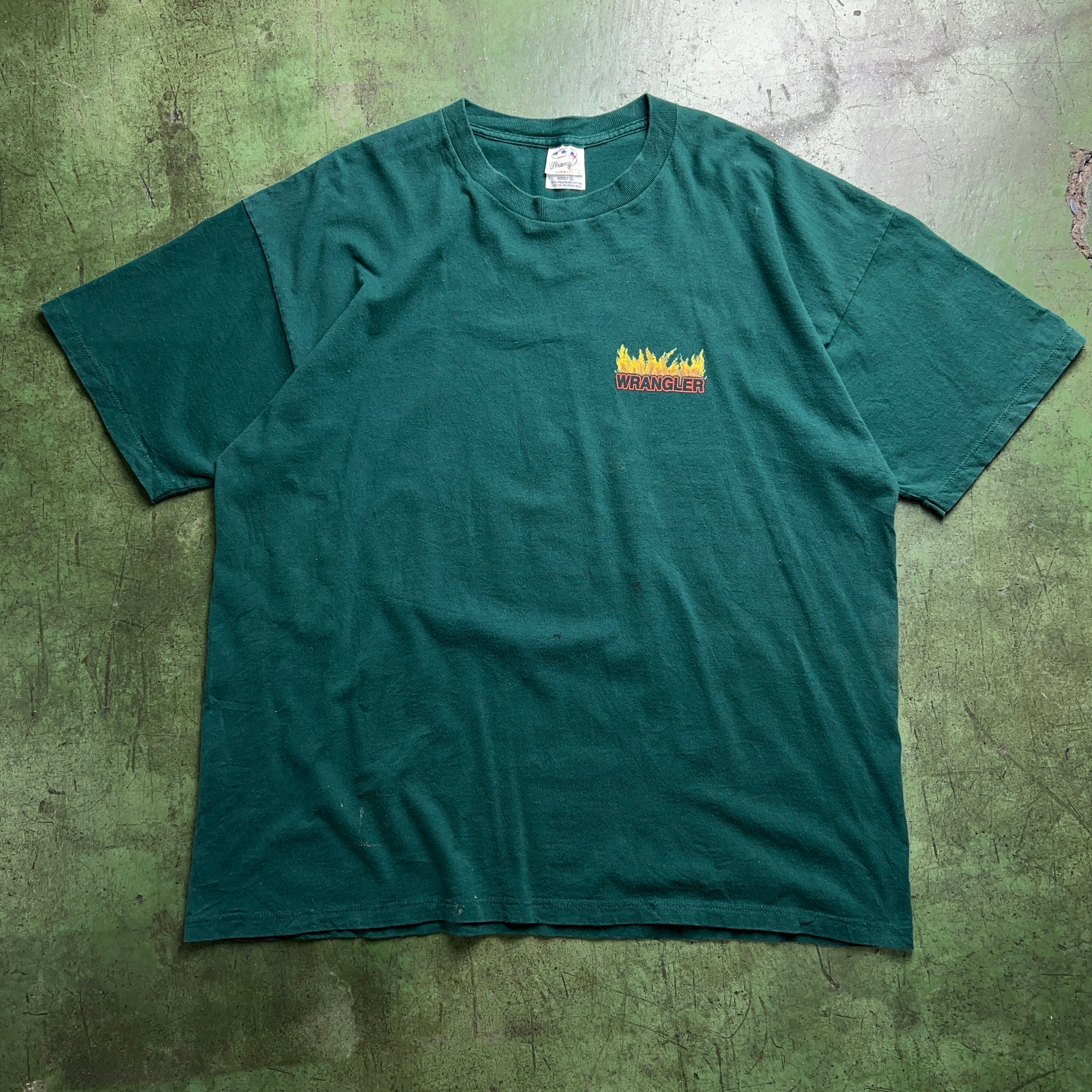 90's~00's WRANGLER Tshirt 90年代 00年代 ラングラーTシャツ ダークグリーン 深緑 2XL USA製 カウボーイ ロデオ【1000A2107】【ネコポス発送可能】