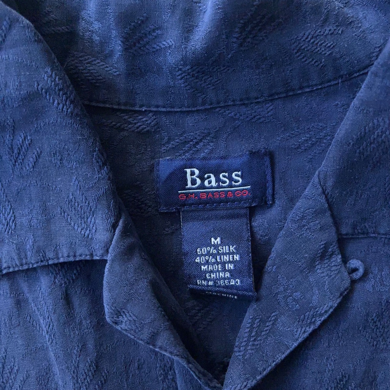 "Bass"Aloha Silk Linen Shirt アロハ ハワイアン シルク リネン オープンカラー 開襟 シャツ 紺 ネイビー サイズM【3000円均一商品】【2点以上の購入で1000円OFF】【TH0813】