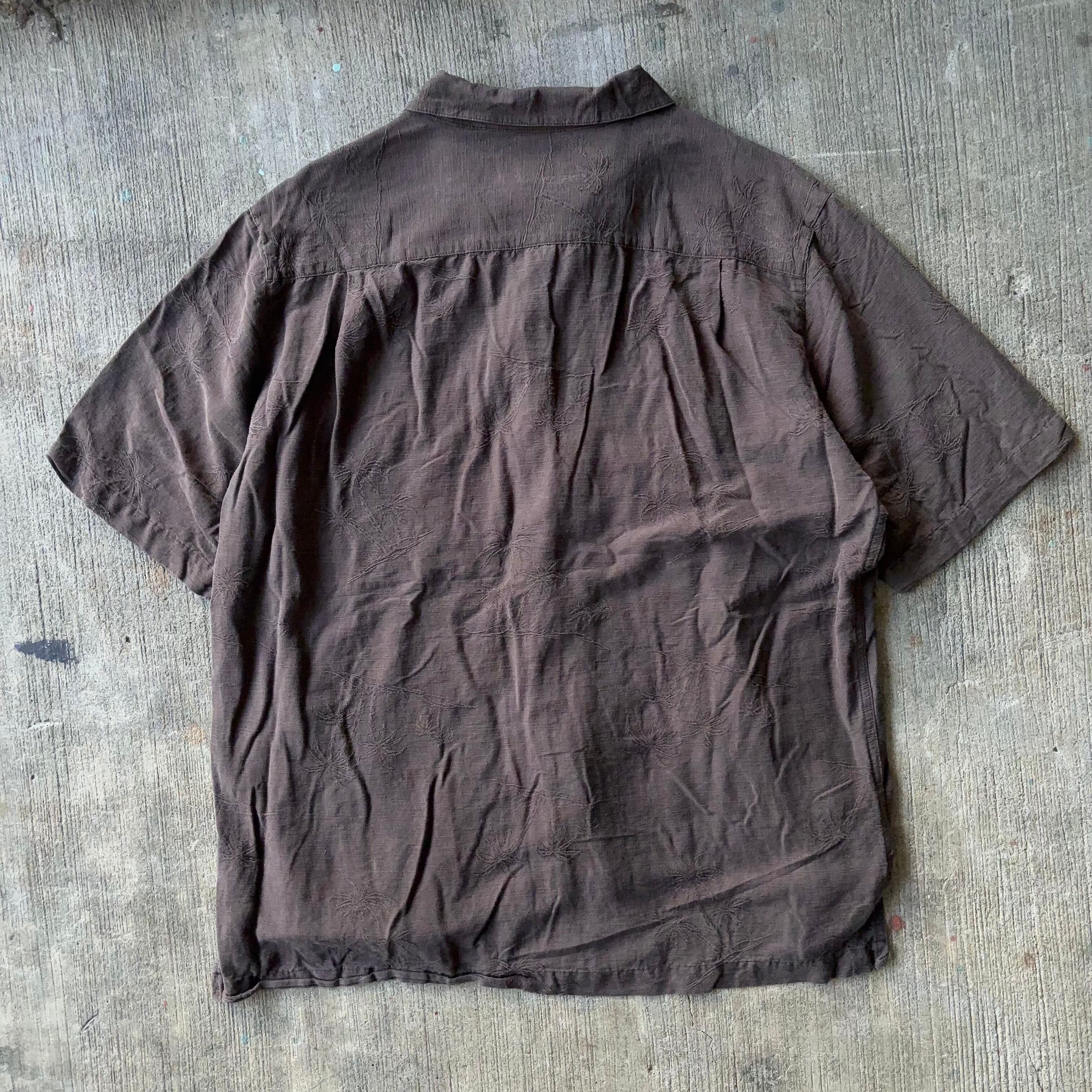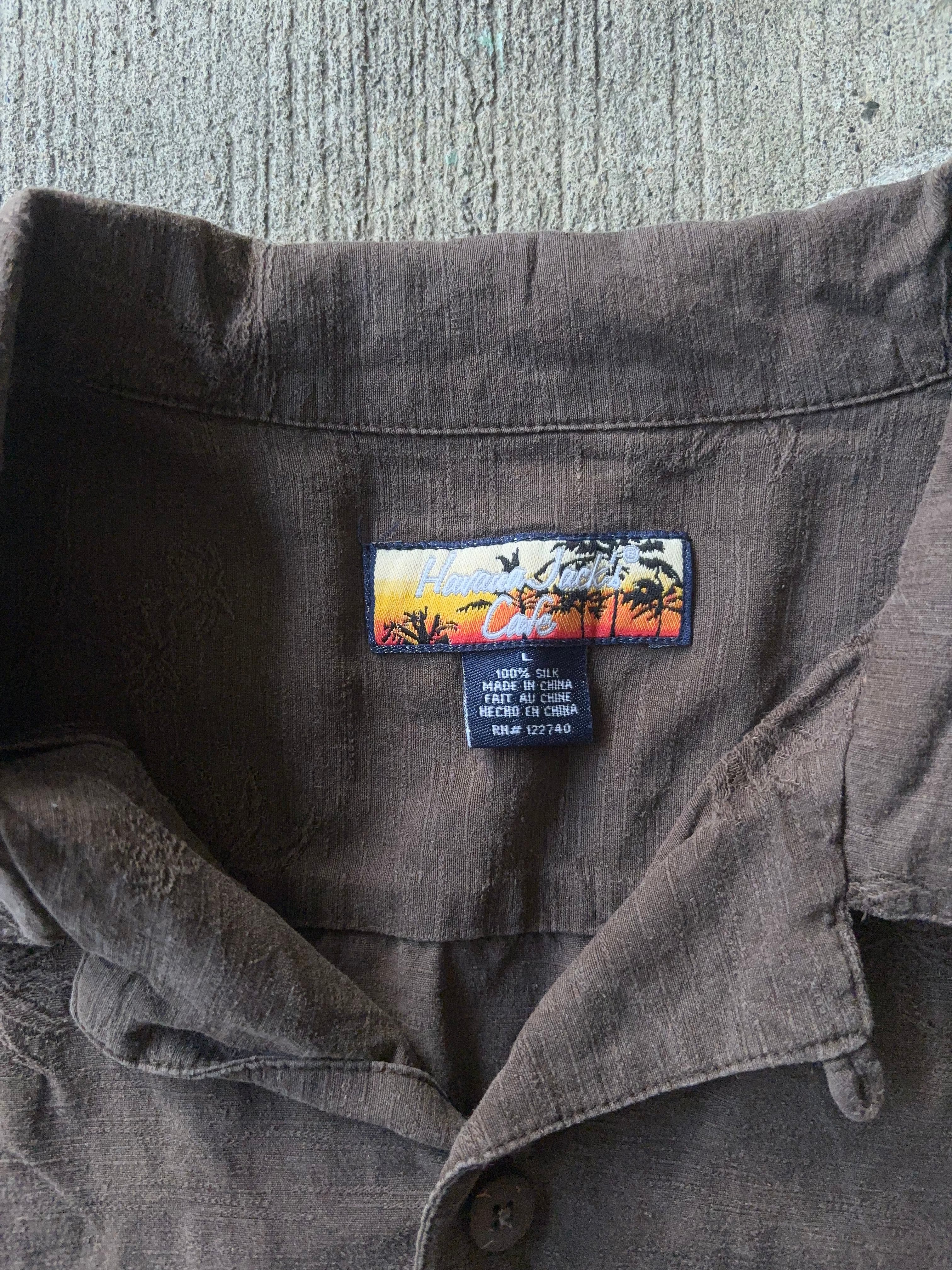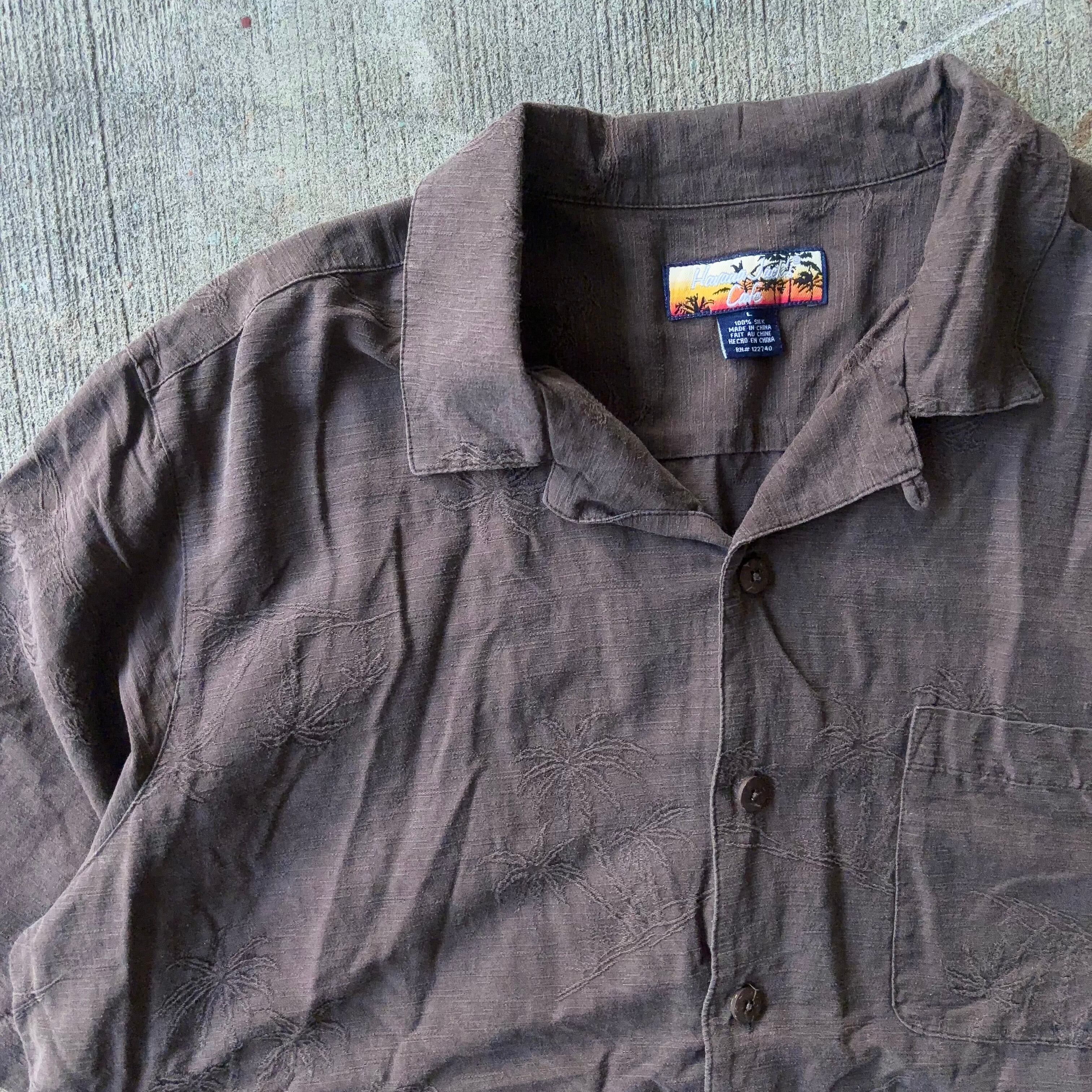 "Havana Jack's"Aloha Silk Shirt アロハ ハワイアン シルク オープンカラー 開襟 シャツ ブラウン 茶色 サイズL【3000円均一商品】【TH0814】