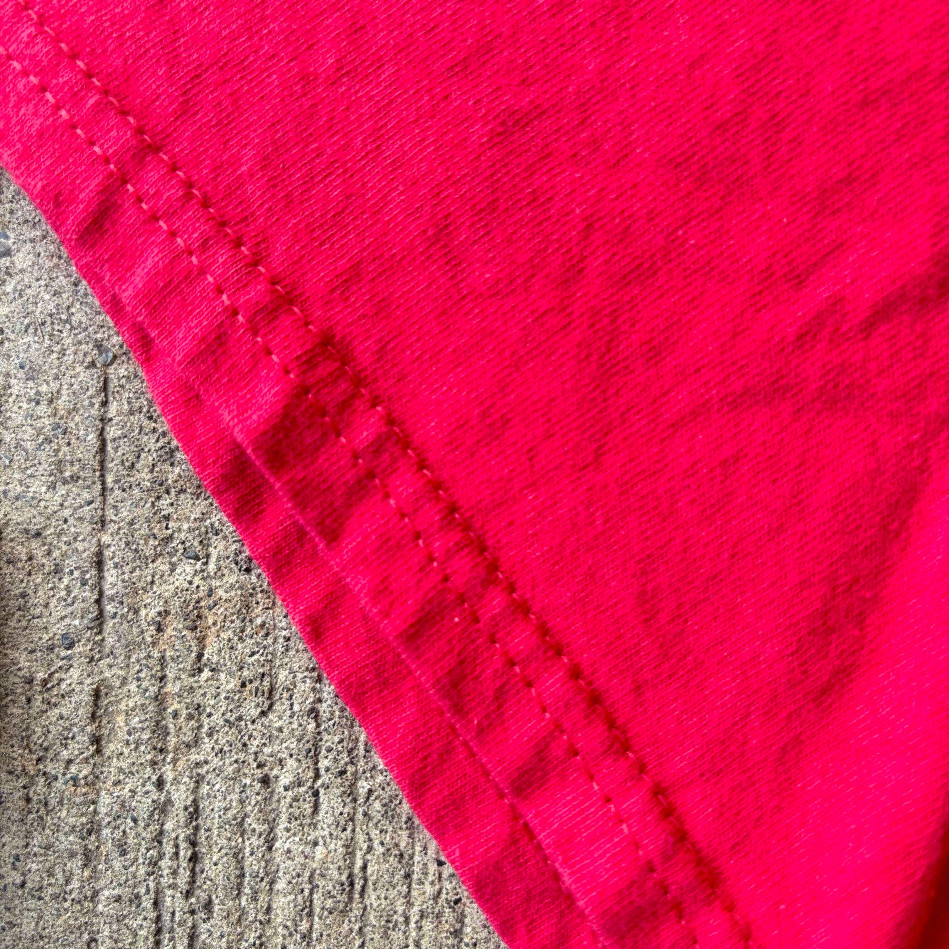 シンプルになりがちな夏のコーデにアクセントとして赤のTシャツを探している方にぜひどうぞ。