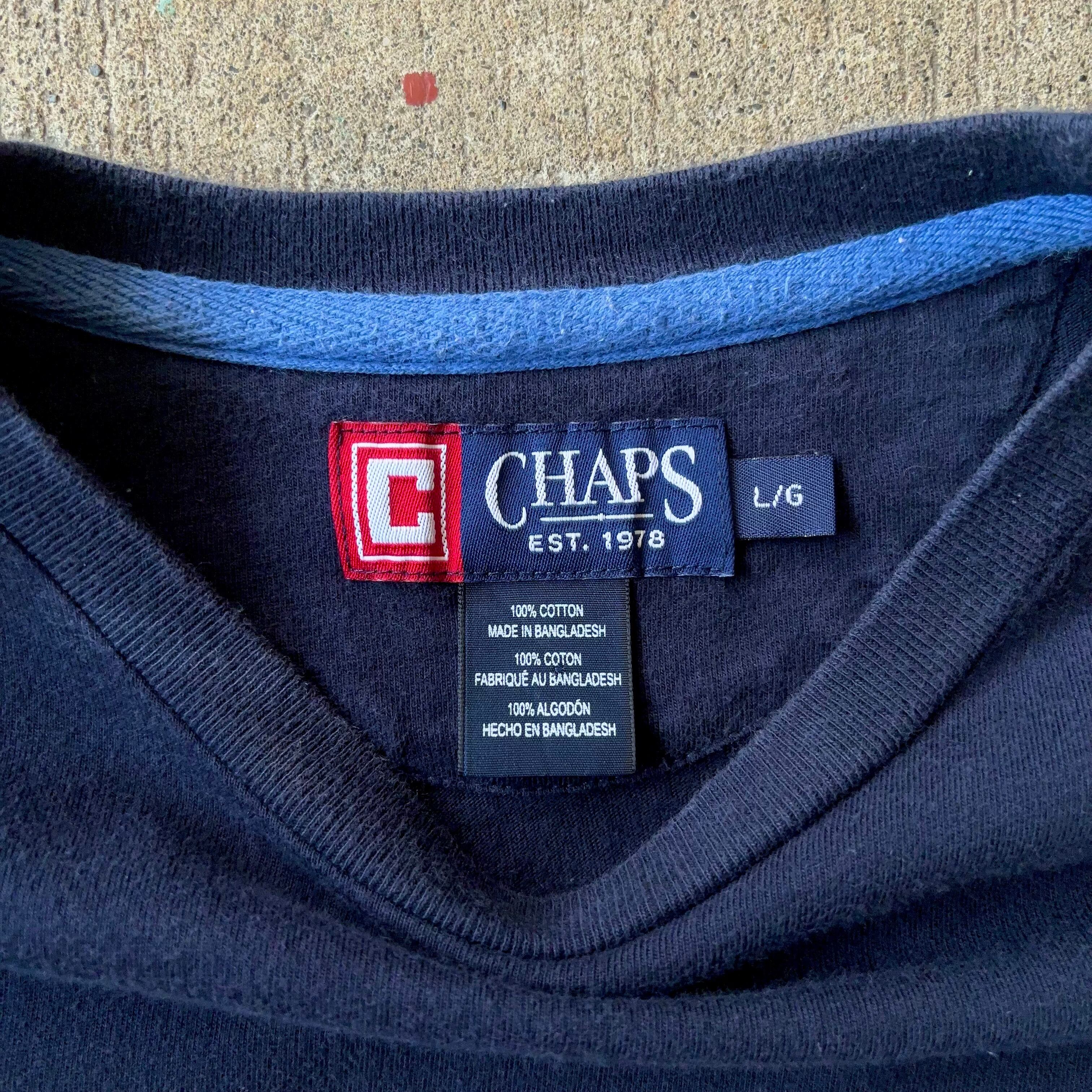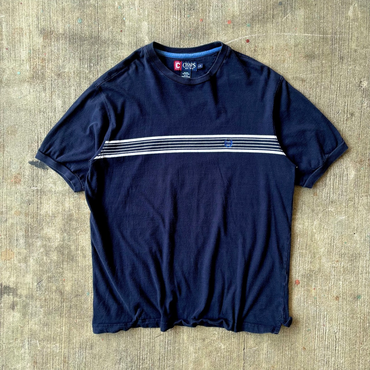 "CHAPS" Ralph LaurenBorder T-Shirt チャップス ラルフローレン ワンポイントボーダー Tシャツ 刺繍 紺 ネイビー 色落ち 色褪せ フェード サイズL【3000円均一商品】【TH0826】