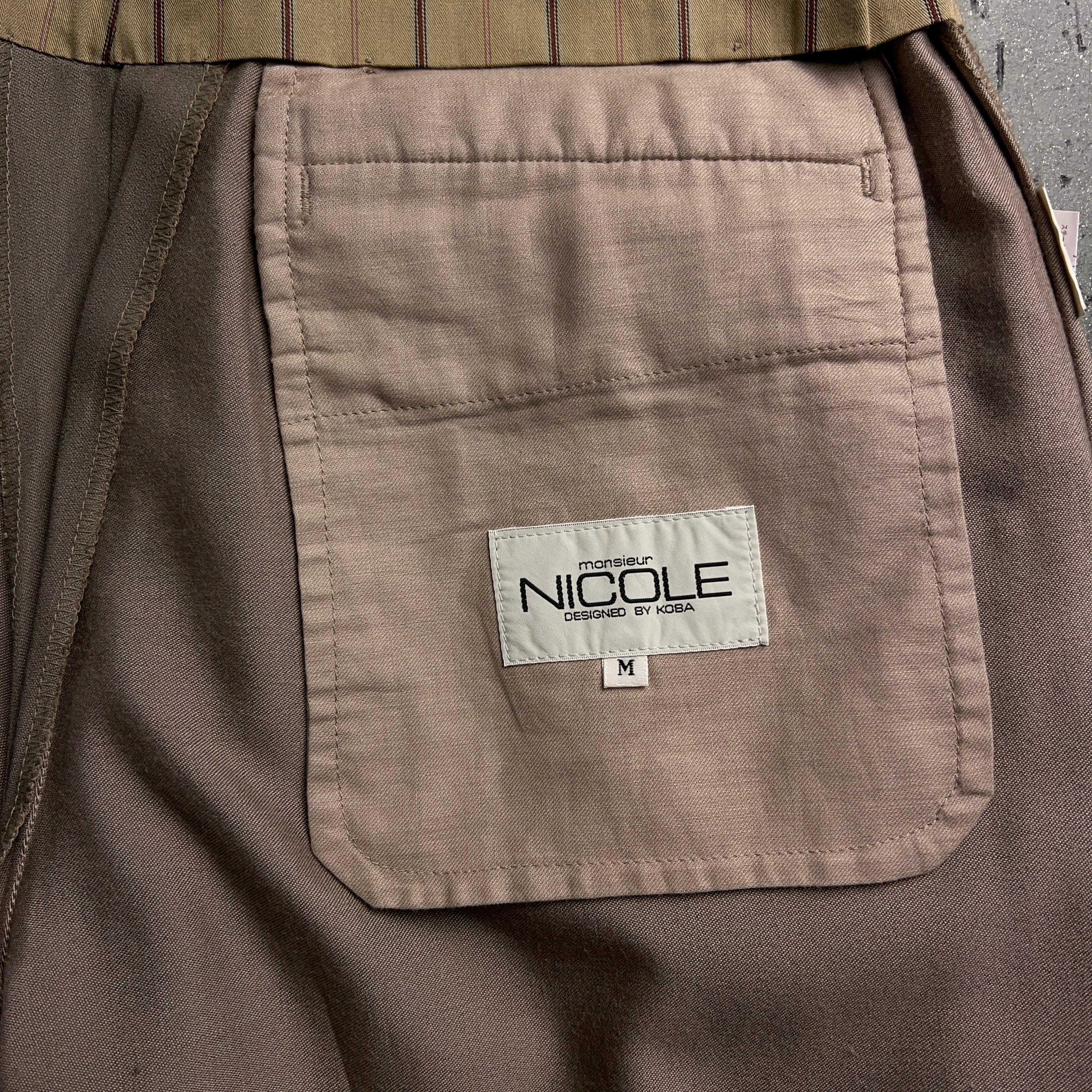 1980年代DCブランド全盛期にコムデギャルソン、ヨウジヤマモト、イッセイミヤケと共に流行したNICOLE(ニコル)。