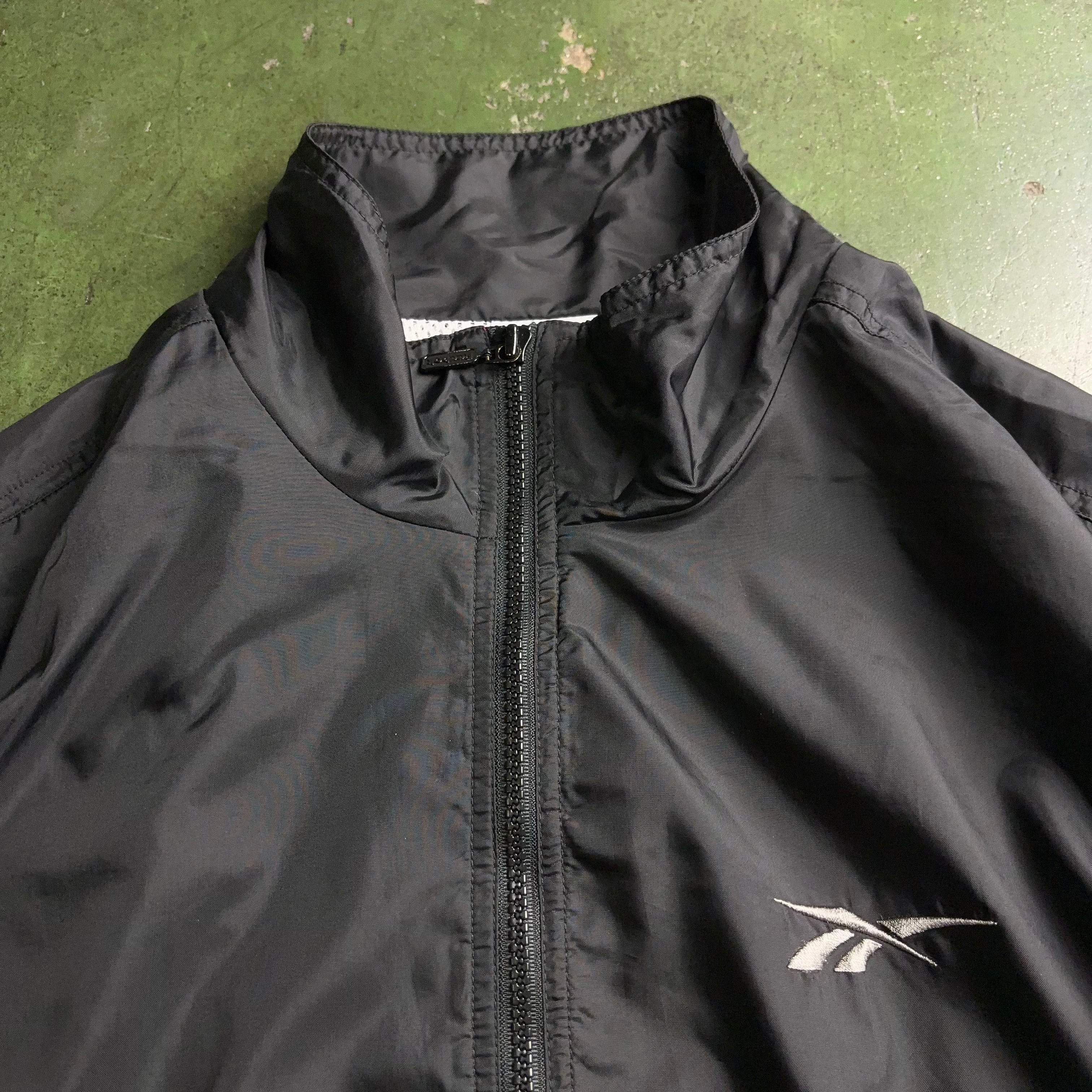 90's~"Reebok" Nylon Zip Up Jacket 90年代~リーボック ナイロン スポーツ ジップアップ ジャケット 刺繍 ブラック 黒 墨黒 スミクロ サイズL【3000円均一商品】【2点以上の購入で1000円OFF】【TH0844】