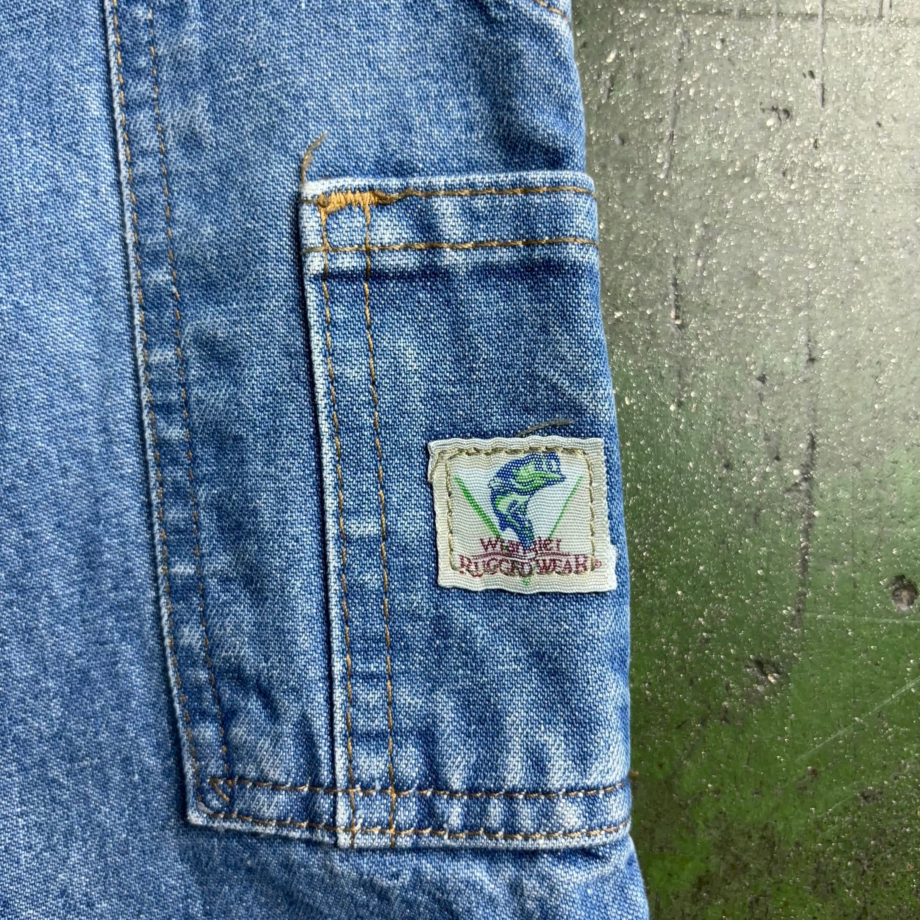 ポケットパッチには「RUGGED WEAR」(頑丈な服)の文字とブラックバスの絵がある珍品。