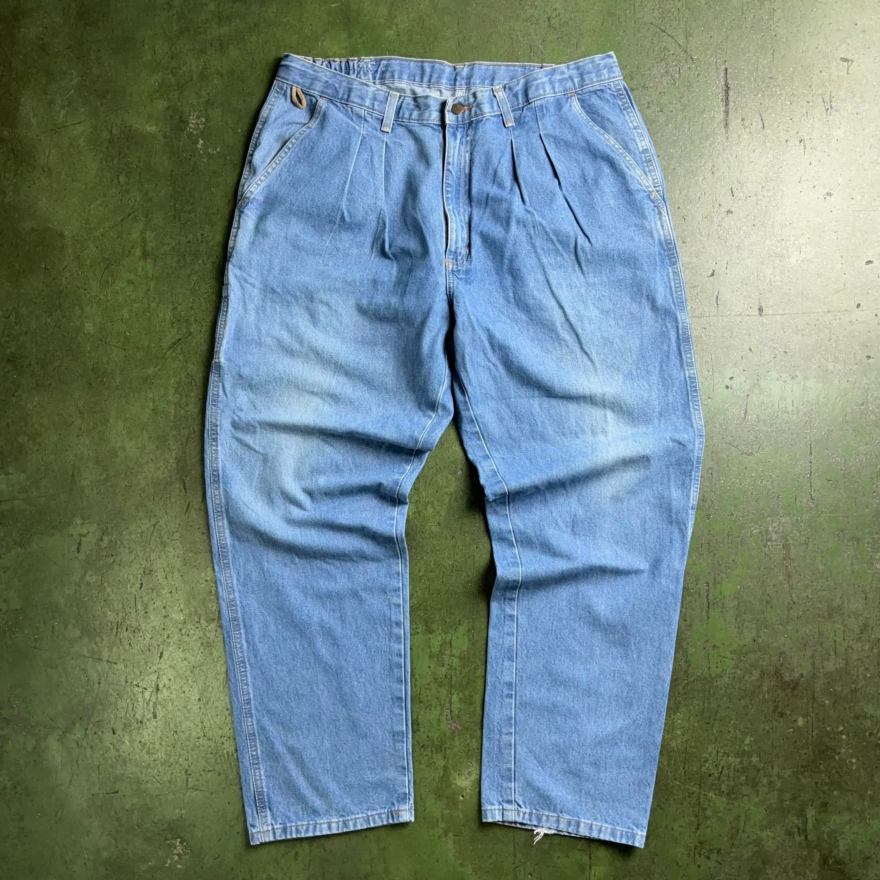"Wrangler" Buggy Wide Painter 2Tuck Denim Pants ラングラー ワイド バギー ペインター デニム パンツ 2タック入り ブルー 青 色落ち 色褪せ フェード W38【3000円均一商品】【2点以上の購入で1000円OFF】【TH0867】