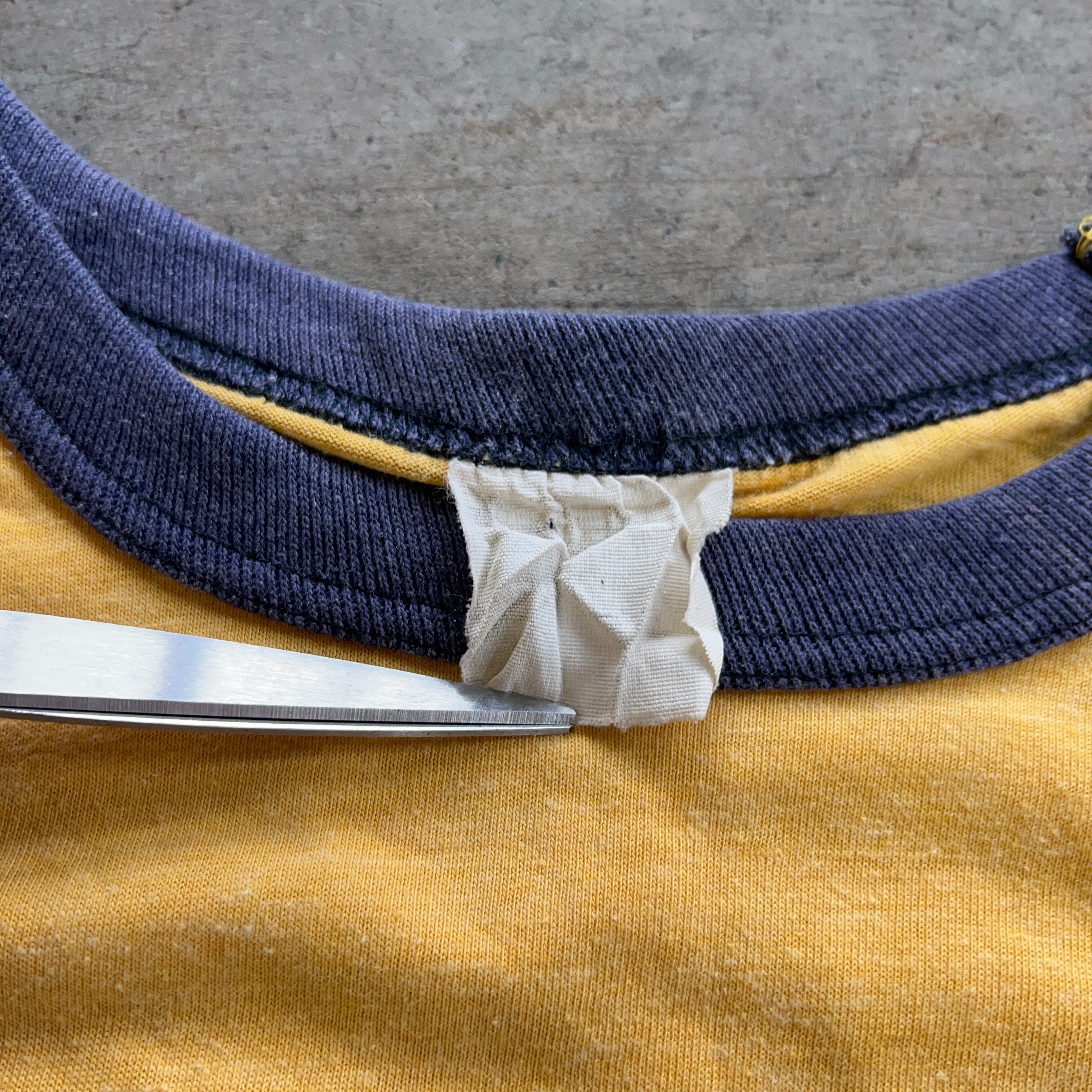 90's "KENT COUNTRY PUBLIC SCHOOL" Ringer Raglan Sleeves T-Shirt MADE IN USA 80年代 90年代 ケント州 リンガー ラグランスリーブ Tシャツ USA製 イエロー 黄色 【1000A2191】【ネコポス発送可能】