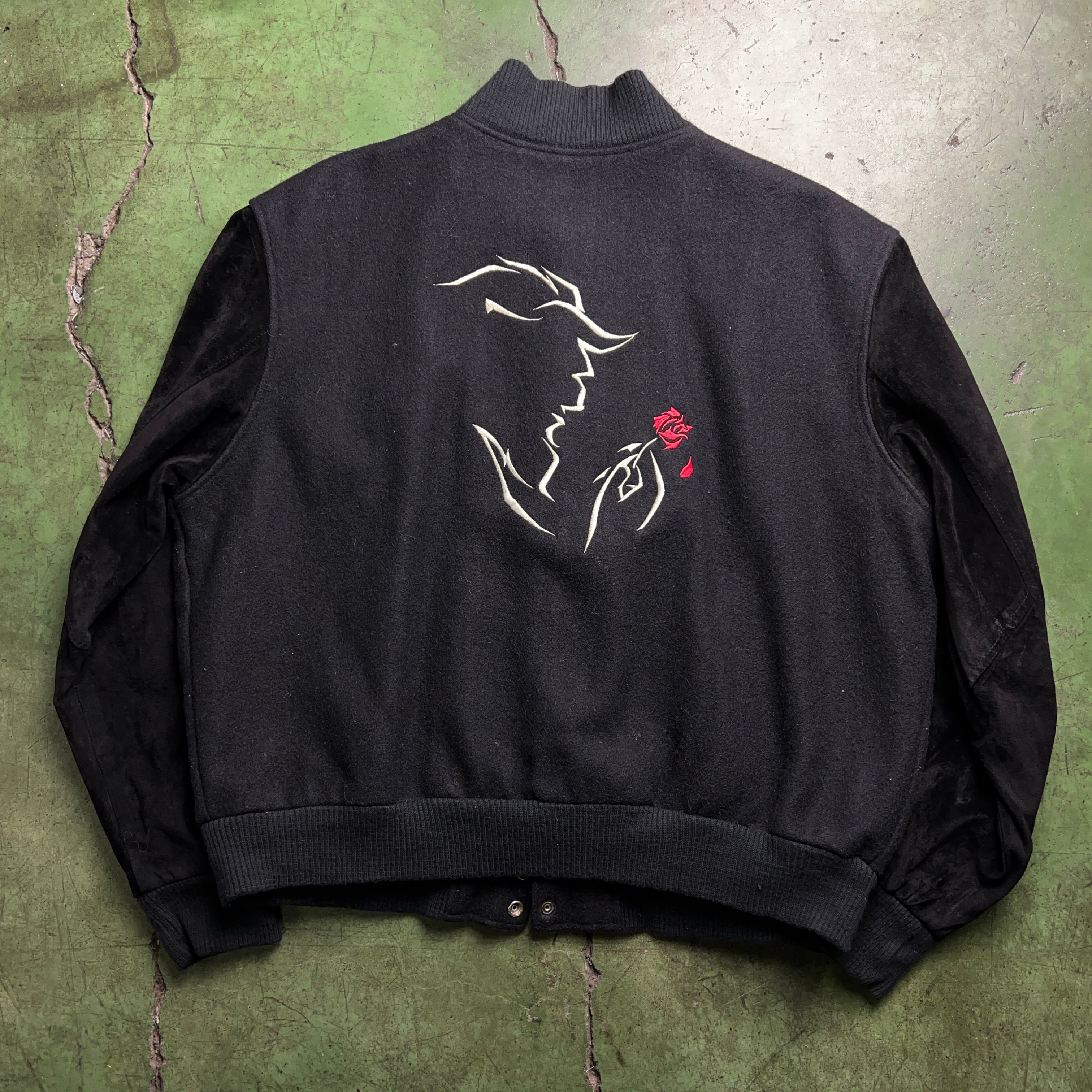 90's "BEAUTY AND THE BEAST" Disney MUSICAL Wool Stadium jumper MADE IN USA SIZE XLARGE 90年代 美女と野獣 ミュージカル ウール スタジャン 黒 ブラック 刺繍【1000A2194】【送料無料】