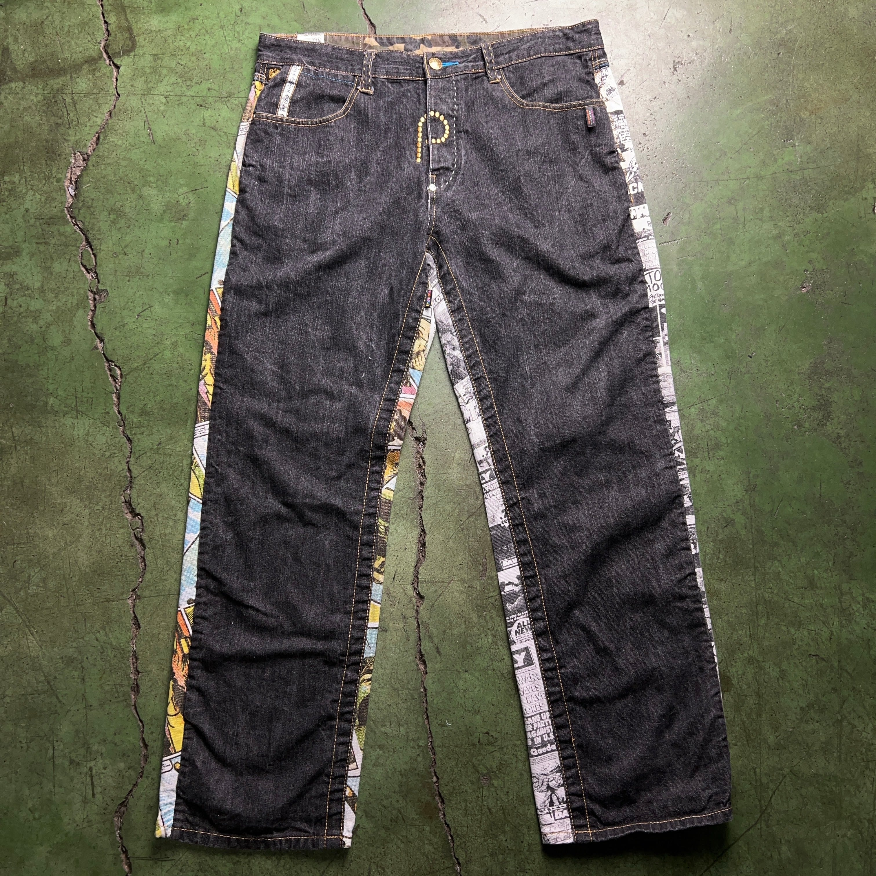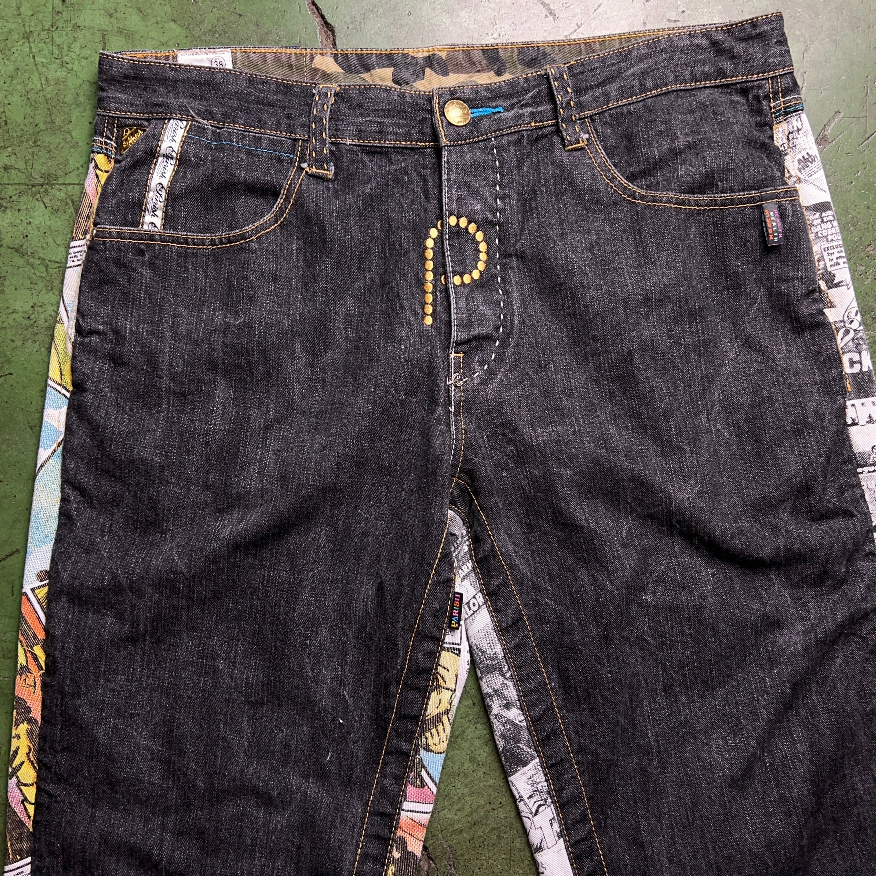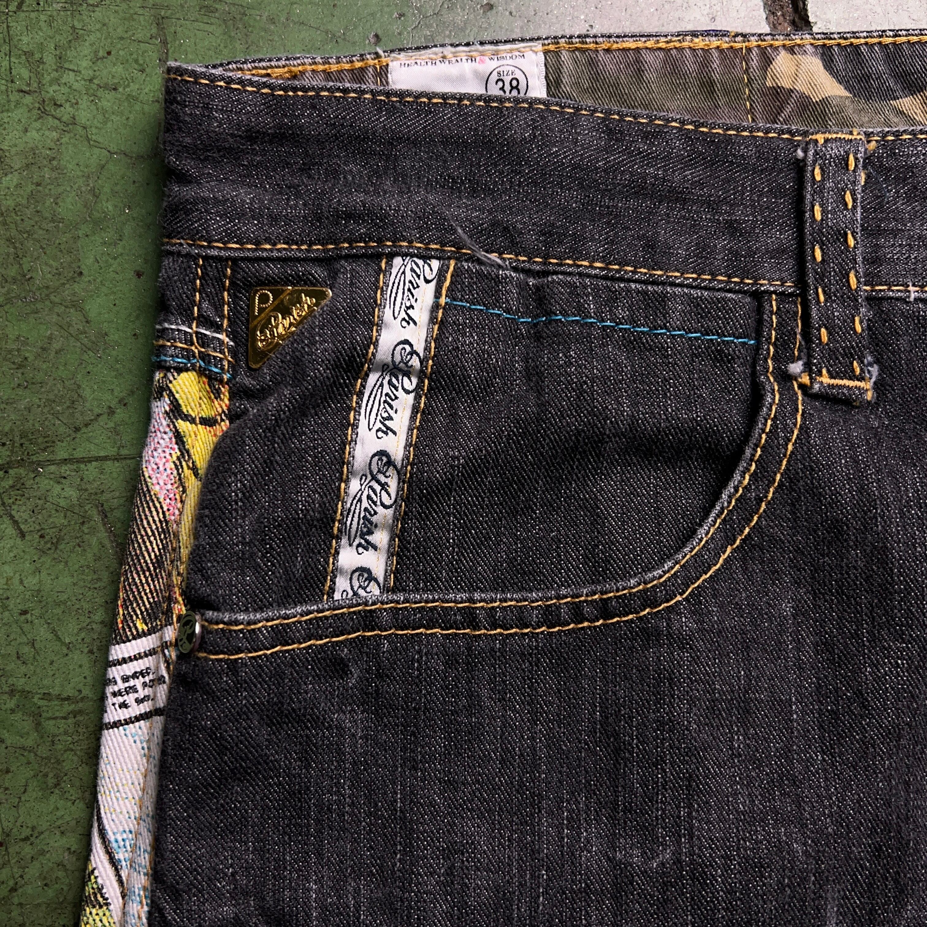 PARISH PATTERNED BLACK JEANS W38 総柄 デザイン ブラックデニム キング牧師 平和 デザイン ワイドデニム【1000A2210】