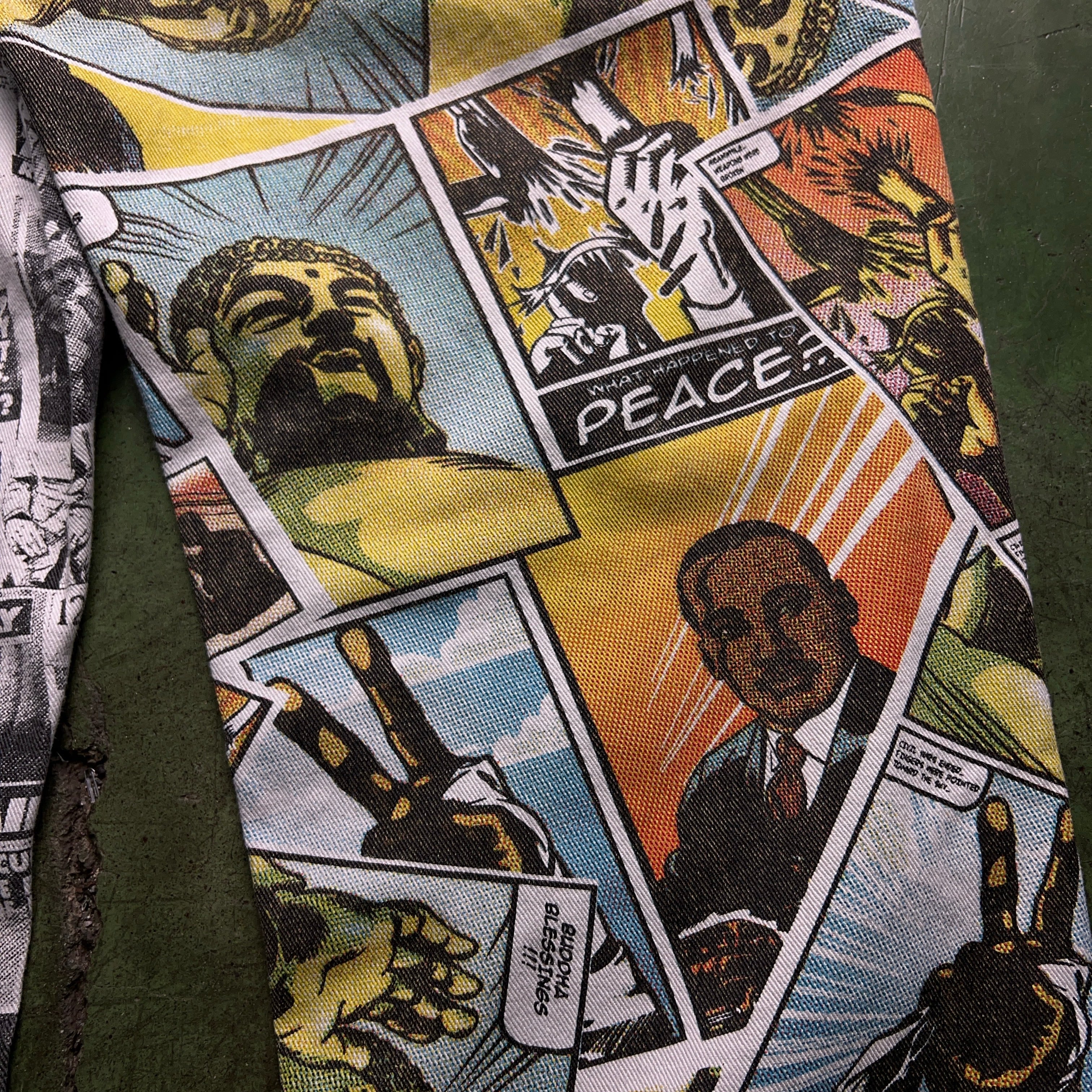 絵柄はキング牧師やアルカイダなどの戦争と平和がテーマの模様。