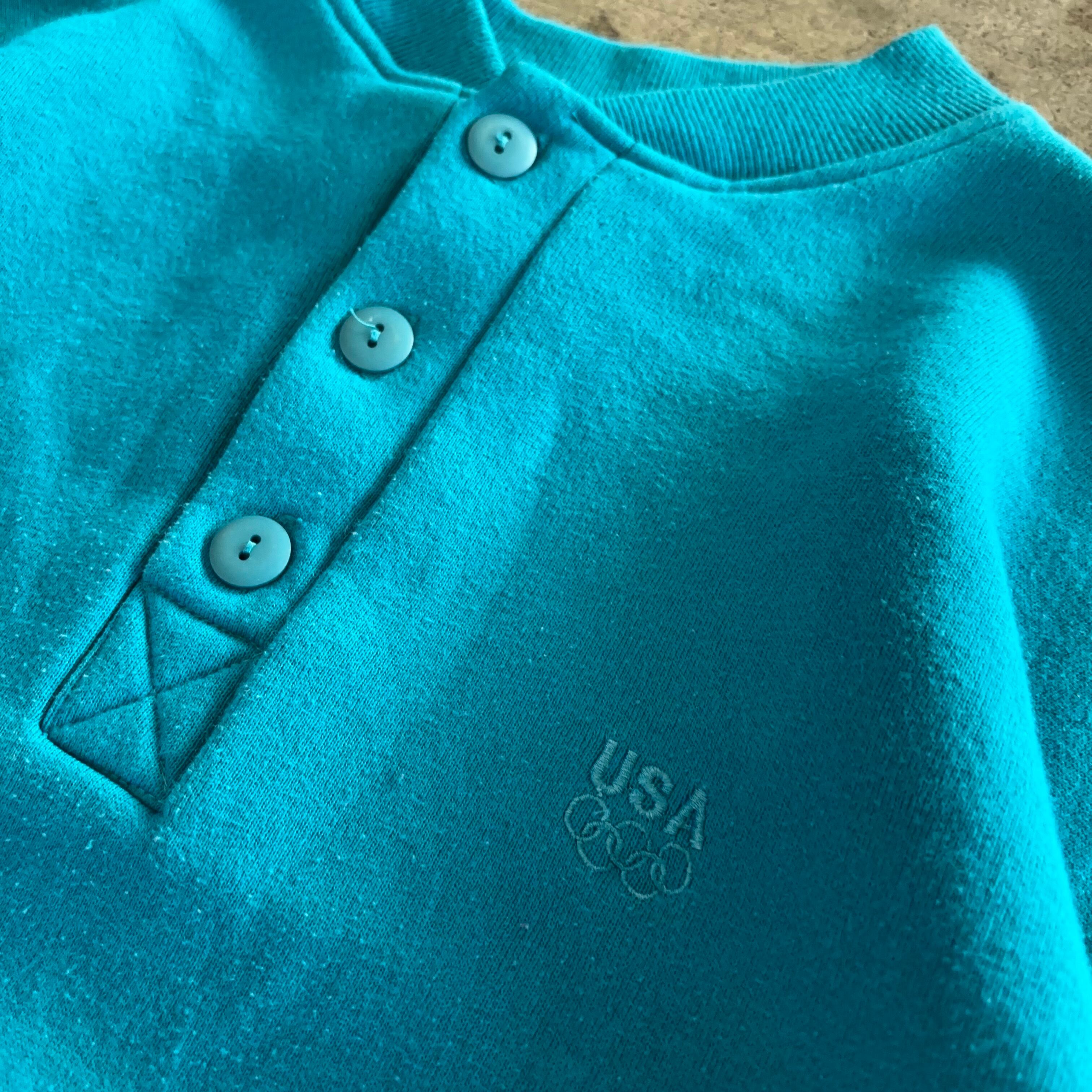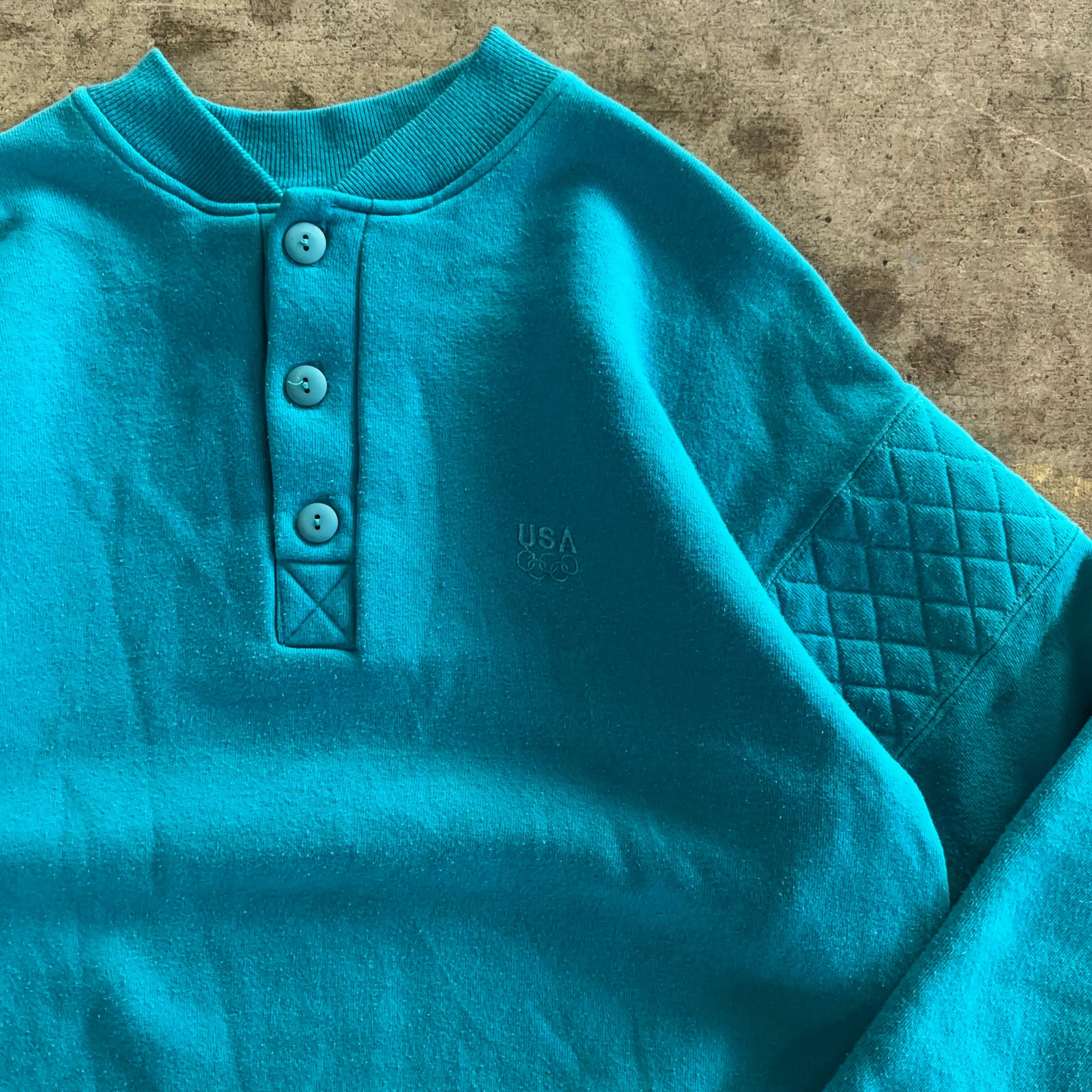 90’s "USA Olympic" HarfBottom Swet SIZE LARGE MADE IN USA 90年代 アメリカオリンピック ハーフボタン スウェット ブルー 青 アメリカ製 USA製【3000円均一商品】【TH0911】