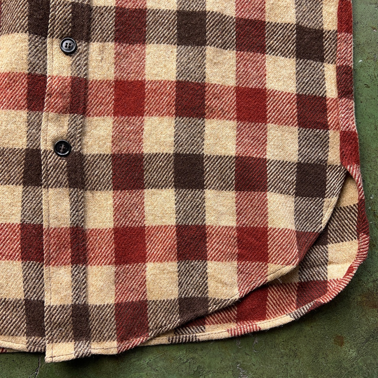 コットンのネルシャツよりも色に深みがあるのがウールシャツの特徴です。