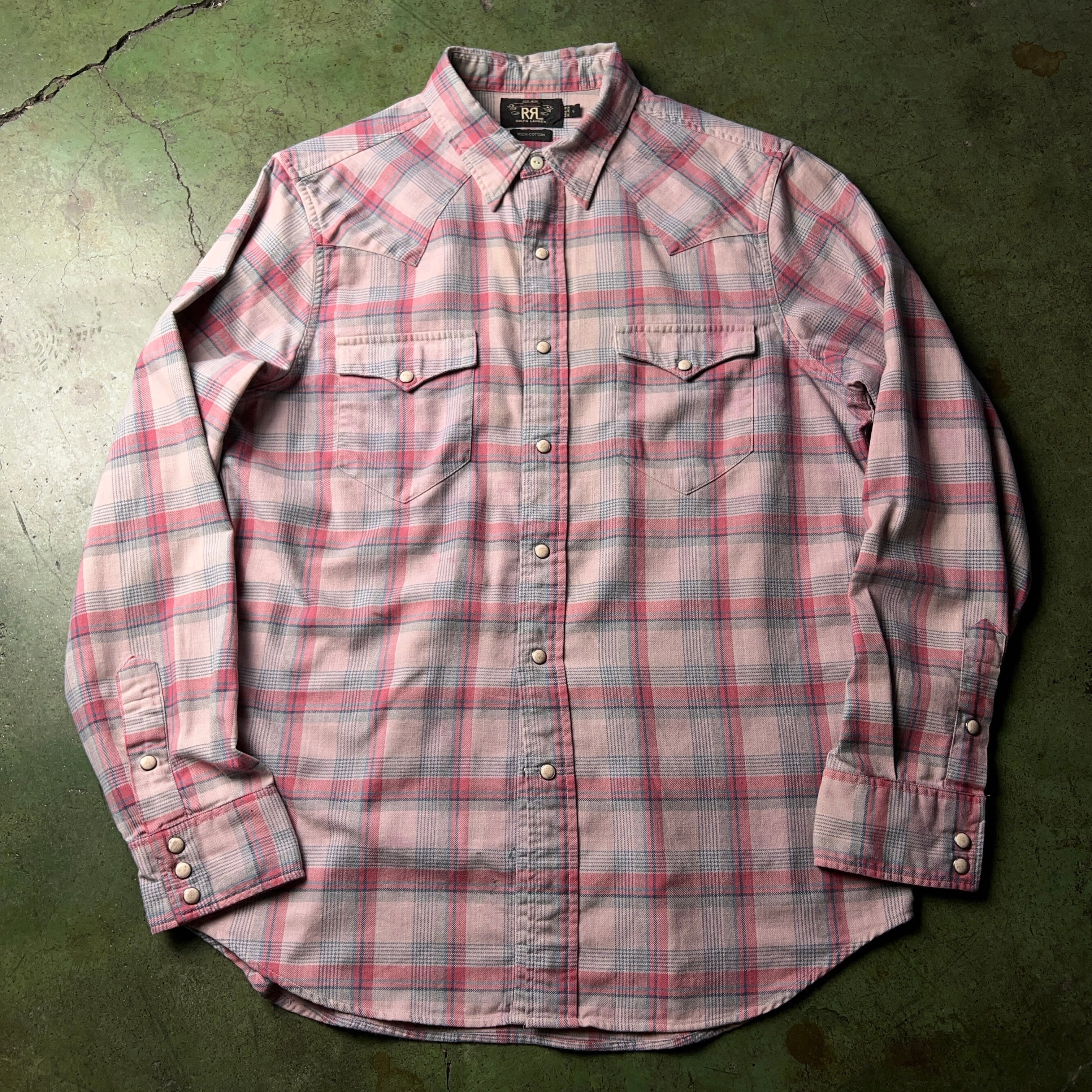 RRL Ralph Lauren Plaid Western Shirt ダブルアールエル ラルフローレン チェック柄 ウエスタンシャツ ネルシャツ SIZE L 一つ星 【1000A2301】