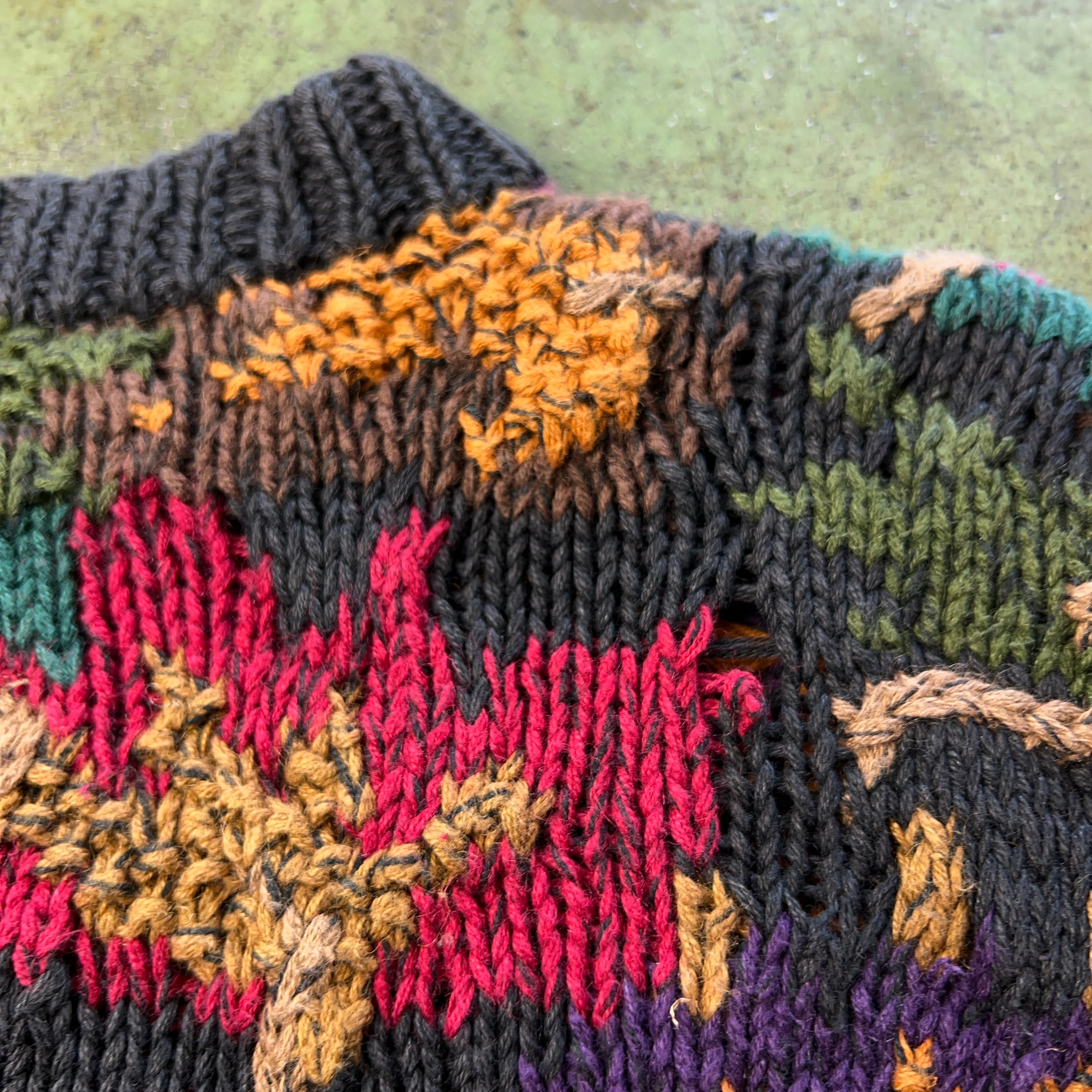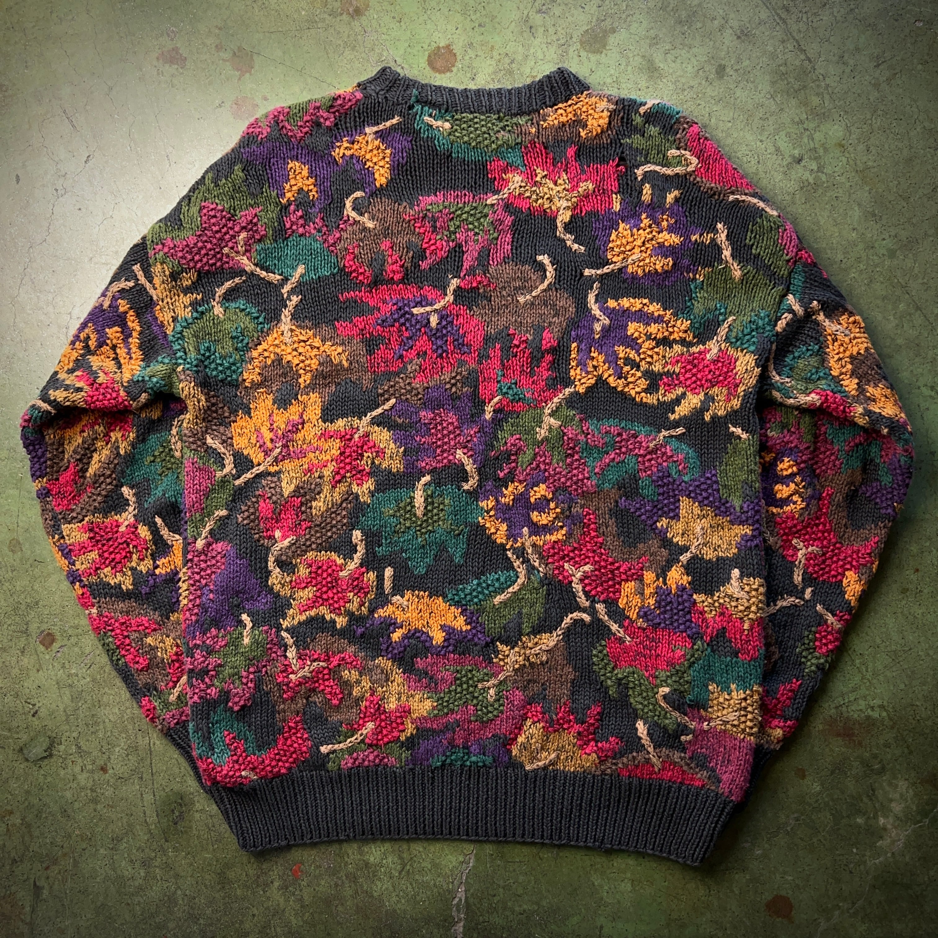 90's Hand Knit Flower Pattern Sweater 90年代 ハンドニットセーター 花柄 3D 立体編み northern isles SIZE XL【1000A2310】