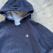 "Champion" Logo Hoodie Swet SIZE M チャンピオン ワンポイントロゴ 刺繍 パーカー フーディ ネイビー 紺【3000円均一商品】【2点以上の購入で1000円OFF】【TH0999】