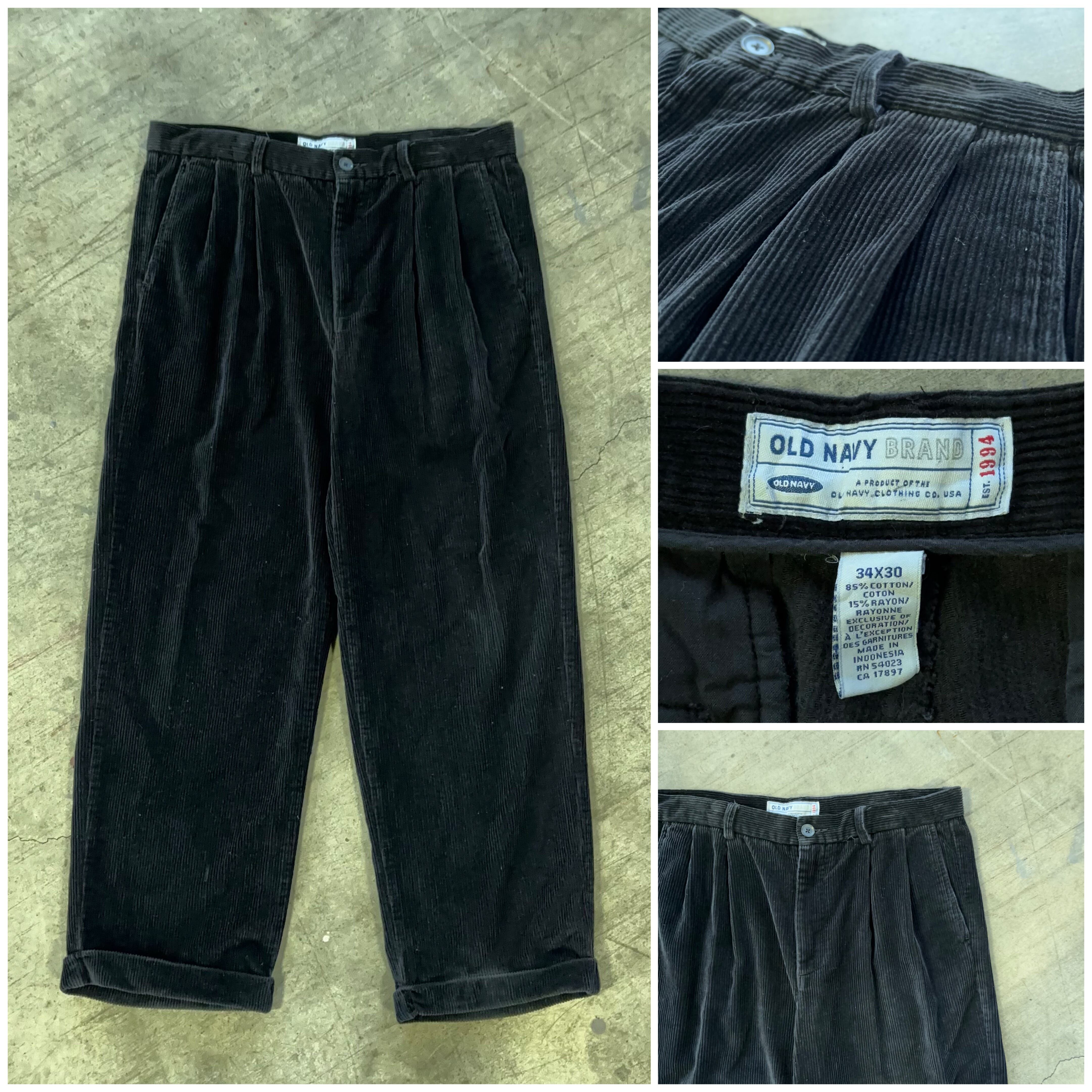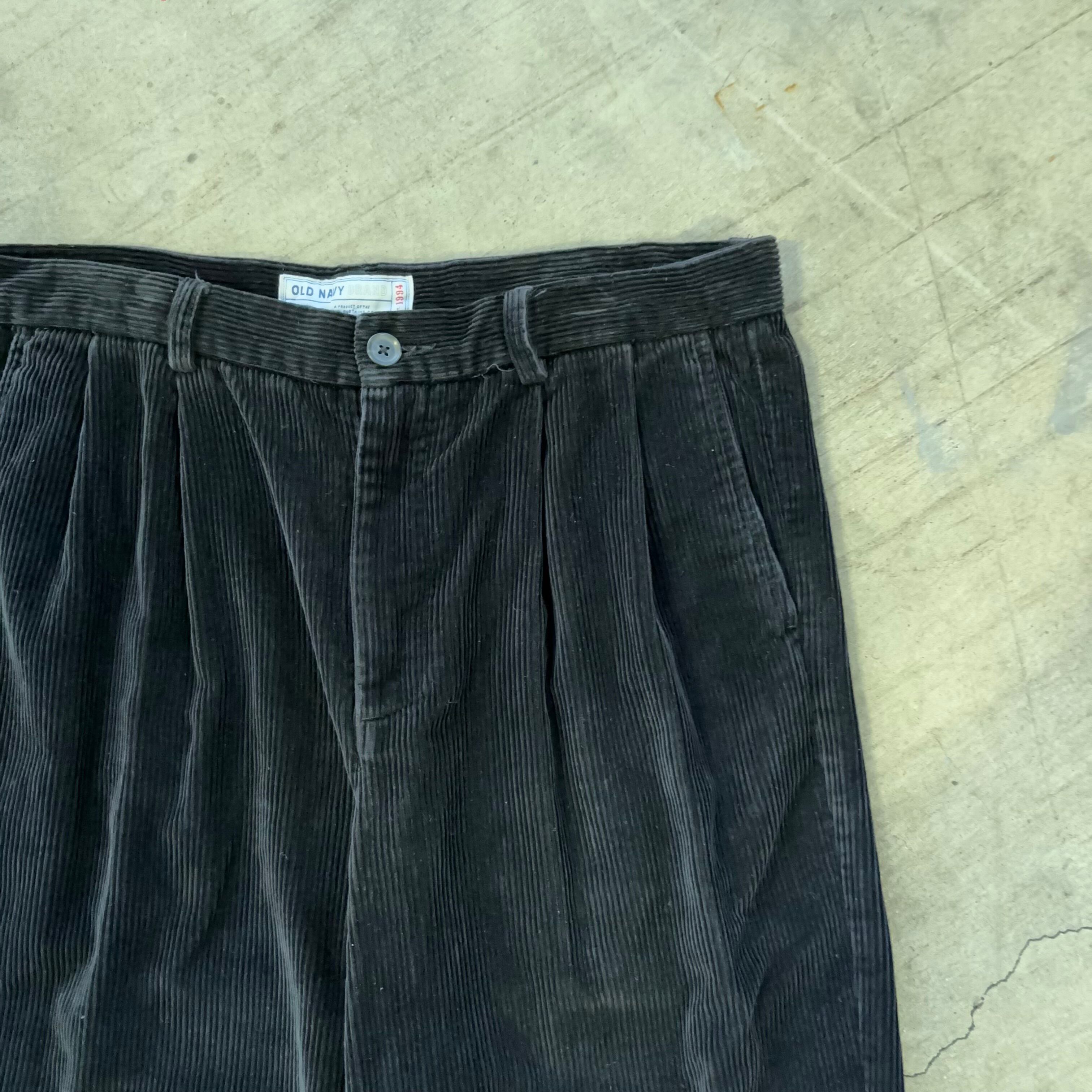"OLD NAVY" 2Tuck Wide Corduroy Pants COTTON RAYON W34 オールドネイビー 2タック入り ワイド コーデュロイ パンツ 太畝 コットン レーヨン ブラック 黒 墨黒 スミクロ【3000円均一商品】【2点以上の購入で1000円OFF】【TH1022】