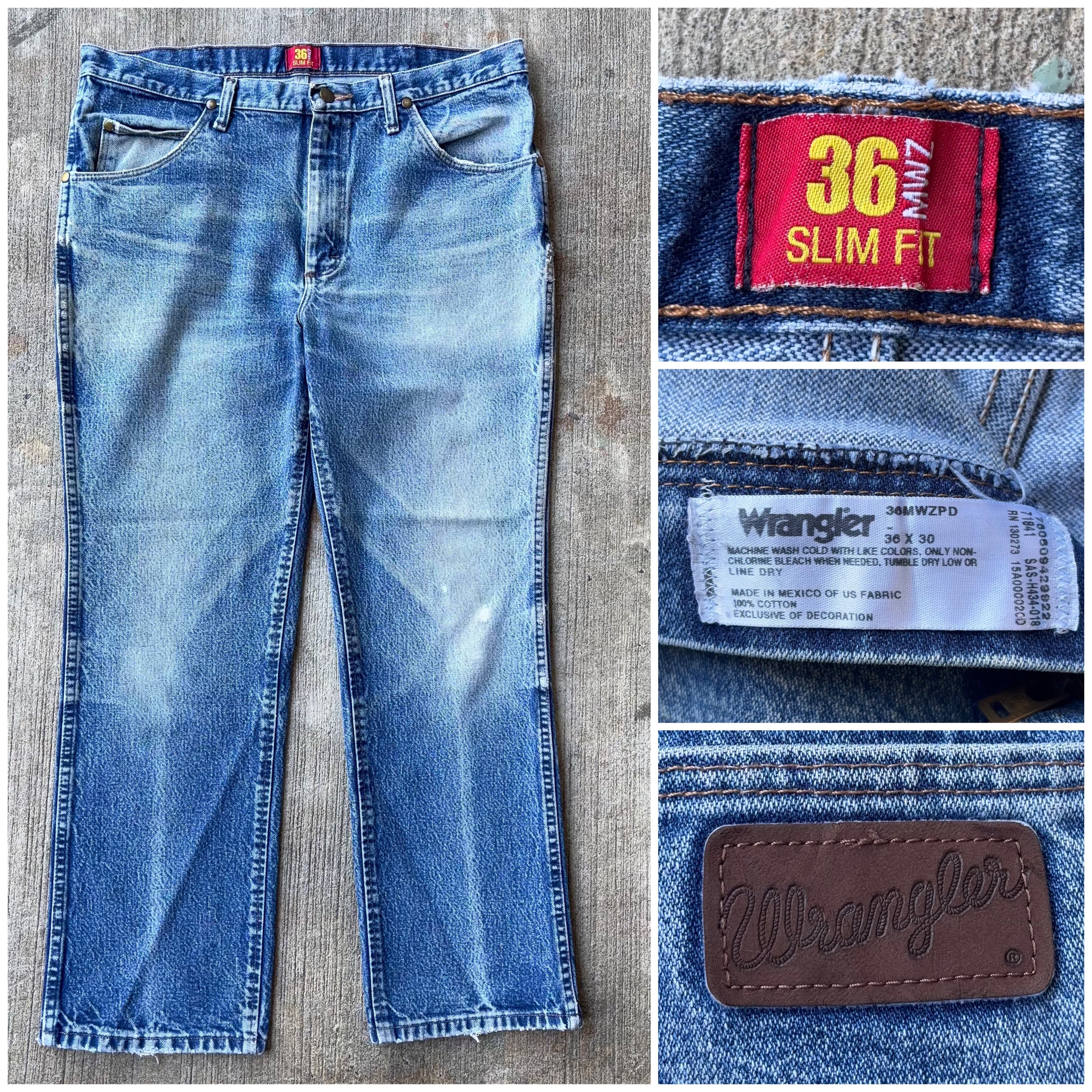 90’s Wrangler Denim Pants SLIM FIT W36 ラングラー スリムフィット デニムパンツ ブルー 青 色落ち 色あせ【3000円均一商品】【2点以上の購入で1000円OFF】【TH1041】