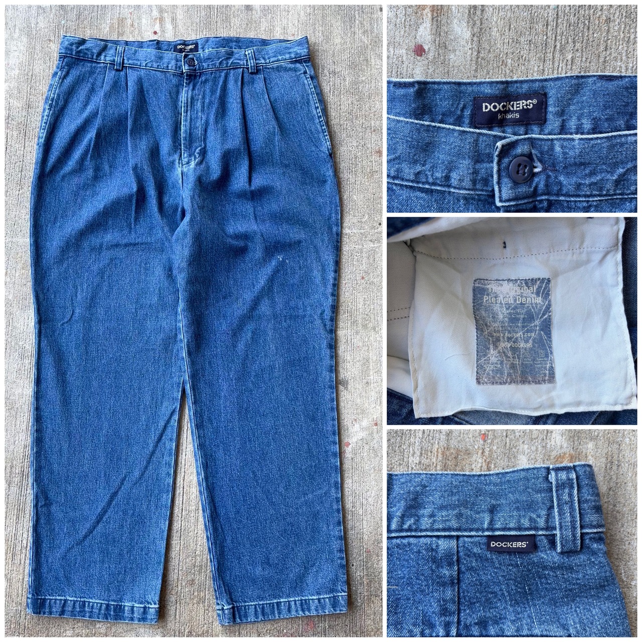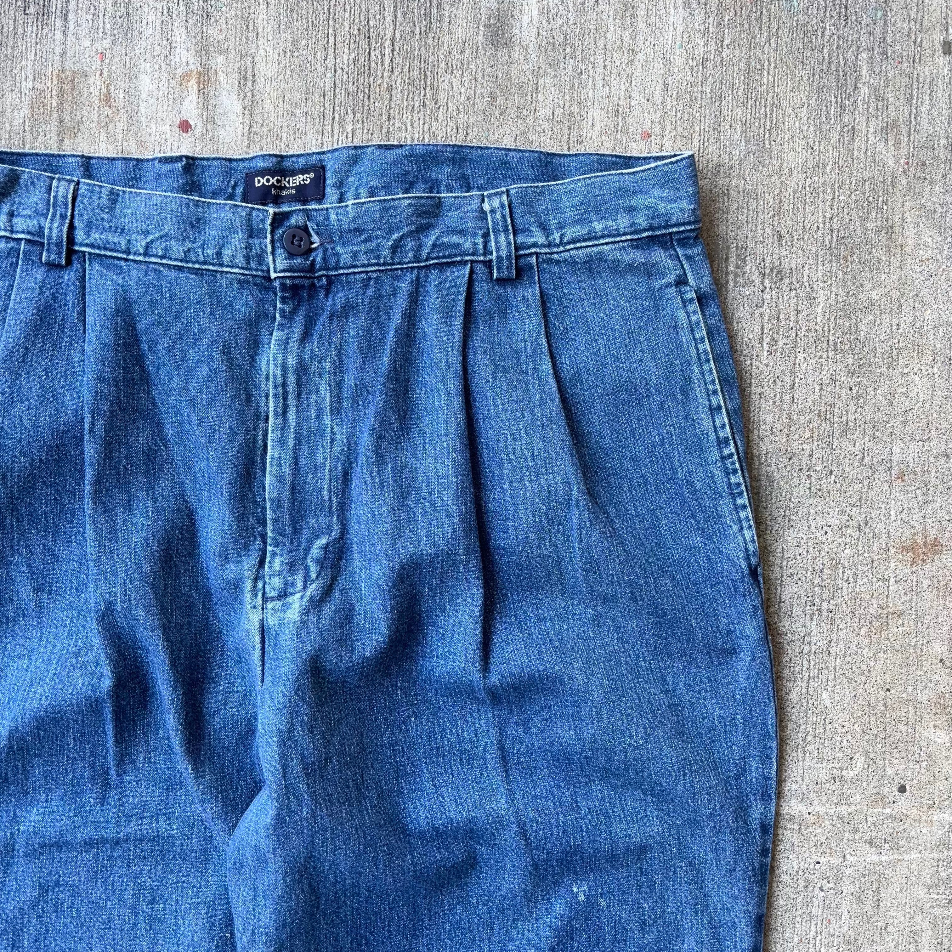 90’s~ DOCKERS 2Tuck Denim Chino Pants W38 ドッカーズ 2タック デニム チノ パンツ 色落ち【3000円均一商品】【2点以上の購入で1000円OFF】【TH1046】