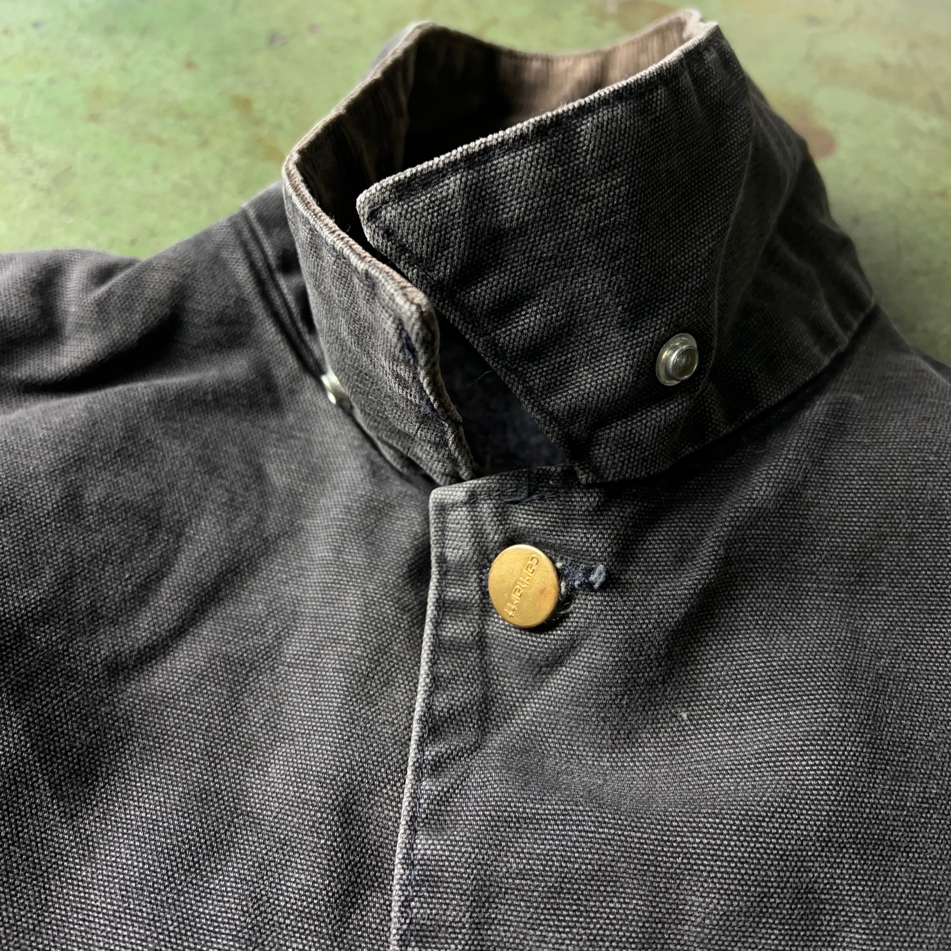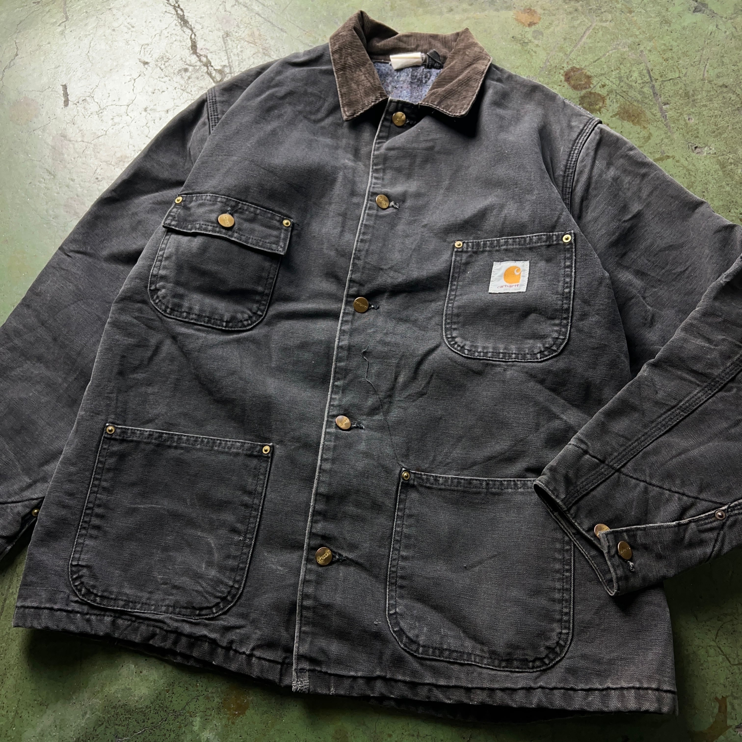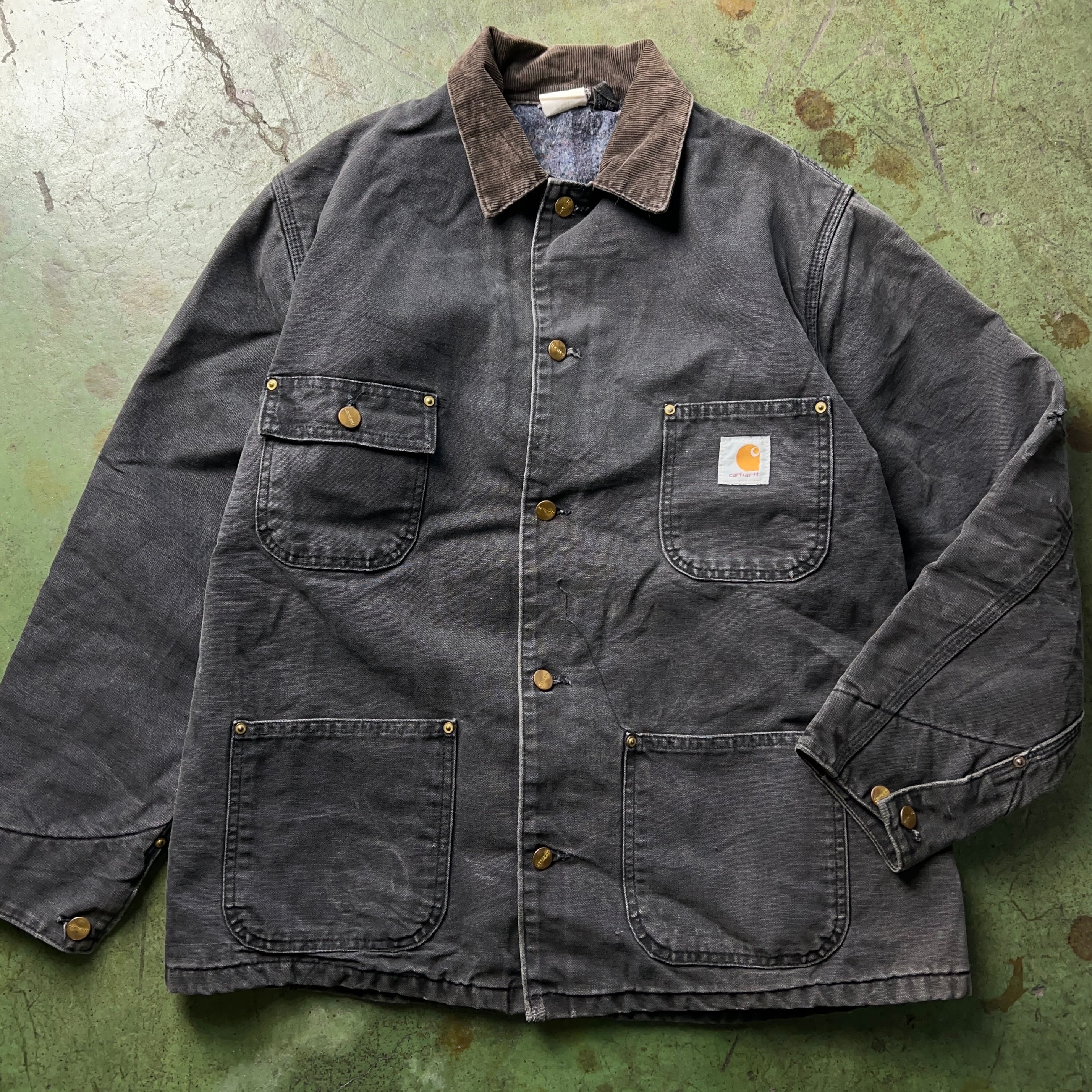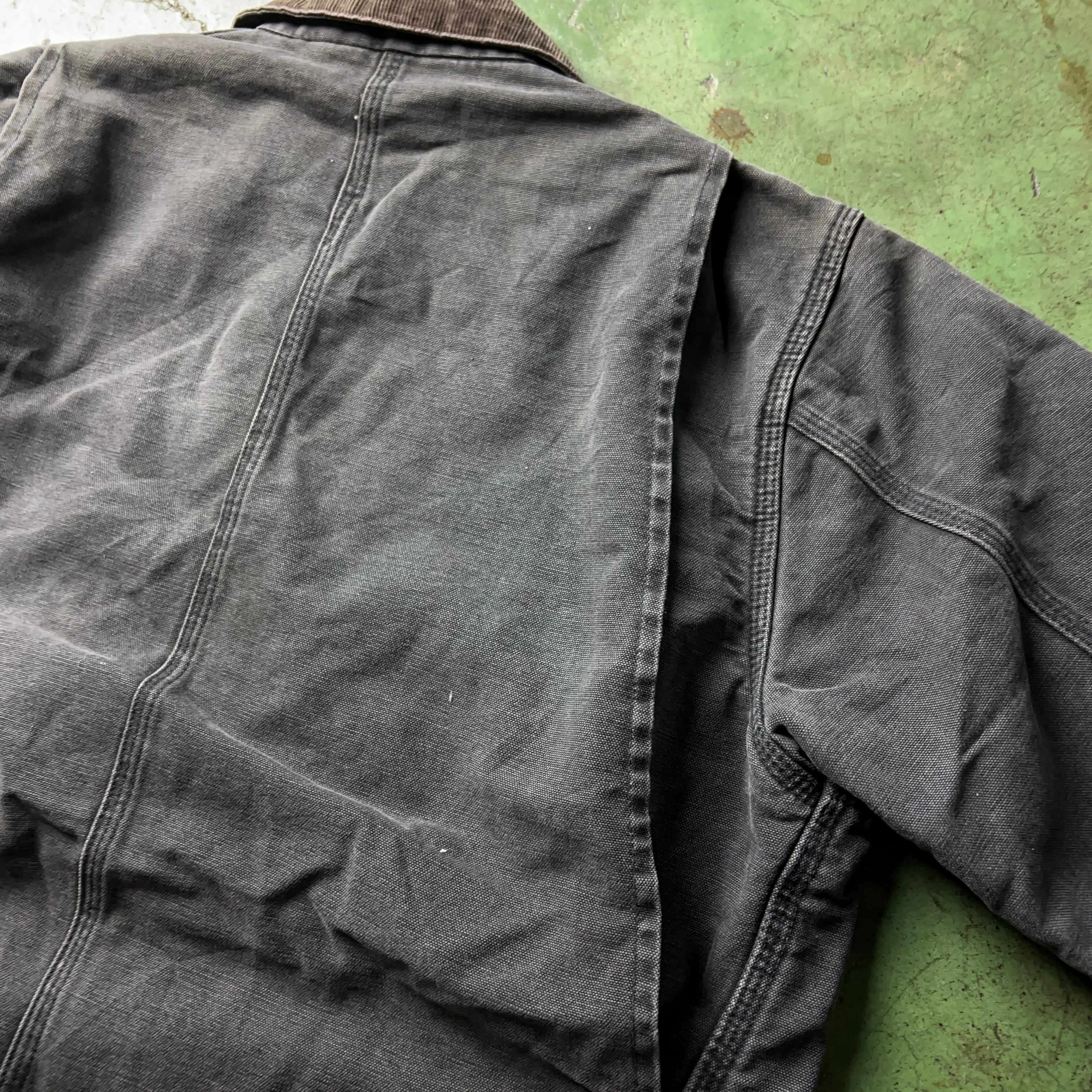 90's~00's Carhartt Michigan Chore Coat 90年代 00年代 カーハート ミシガンチョアコート ダックジャケット ダークグレー スミクロ 墨黒 色褪せ 襟コーデュロイ【1000A3000】【送料無料】