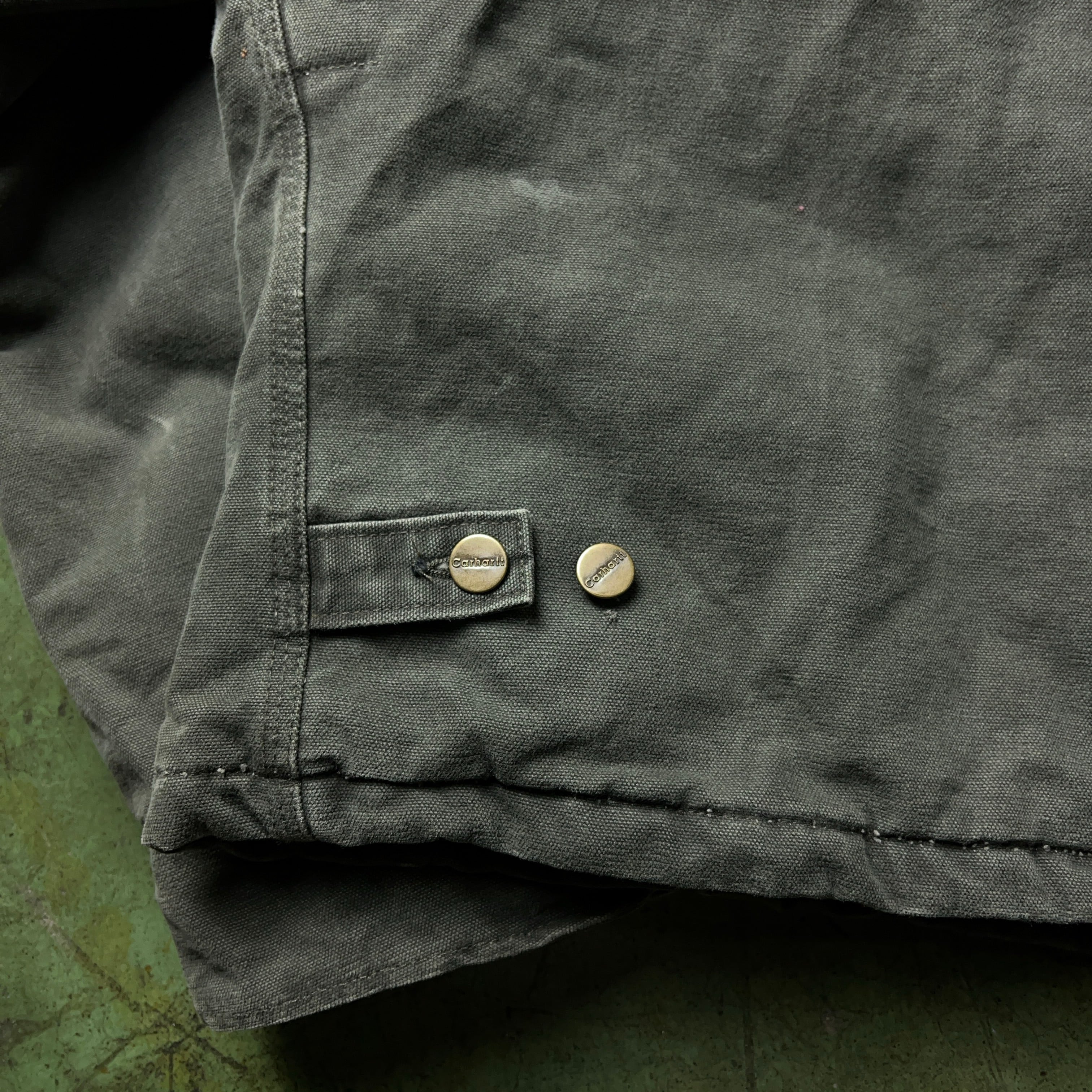 00's Carhartt Traditional Jacket J22 Moss Green MADE IN USA XXL 2XL 00年代 カーハート トラディショナルジャケット ダックジャケット モスグリーン 裏地キルティングダウン 色褪せ 大きいサイズ【1000A3003】【送料無料】
