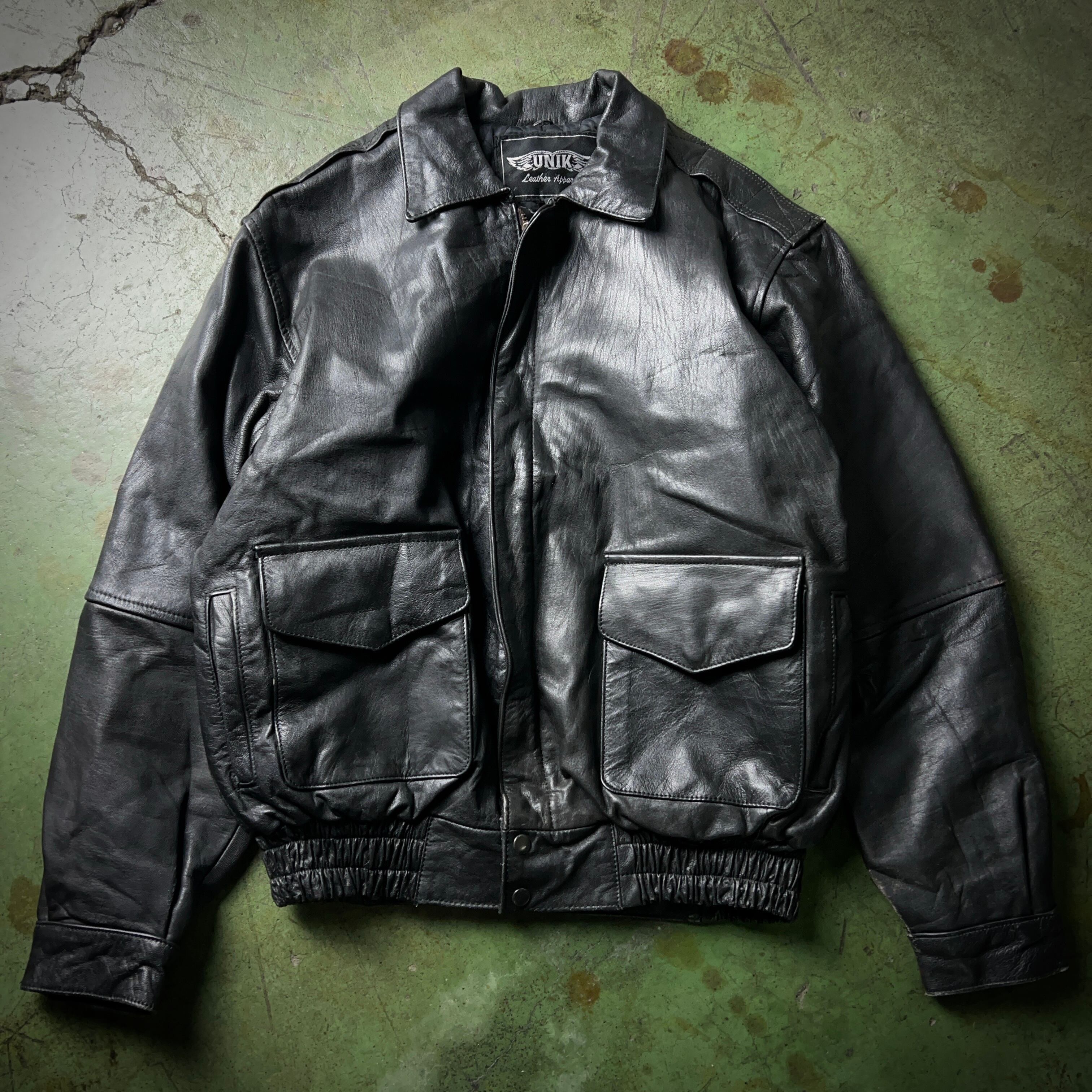 A-2 Type BLACK LEATHER JACKET レザージャケット フライトジャケット ブルゾン ショート丈 ブラック 黒【1000A3006】【送料無料】