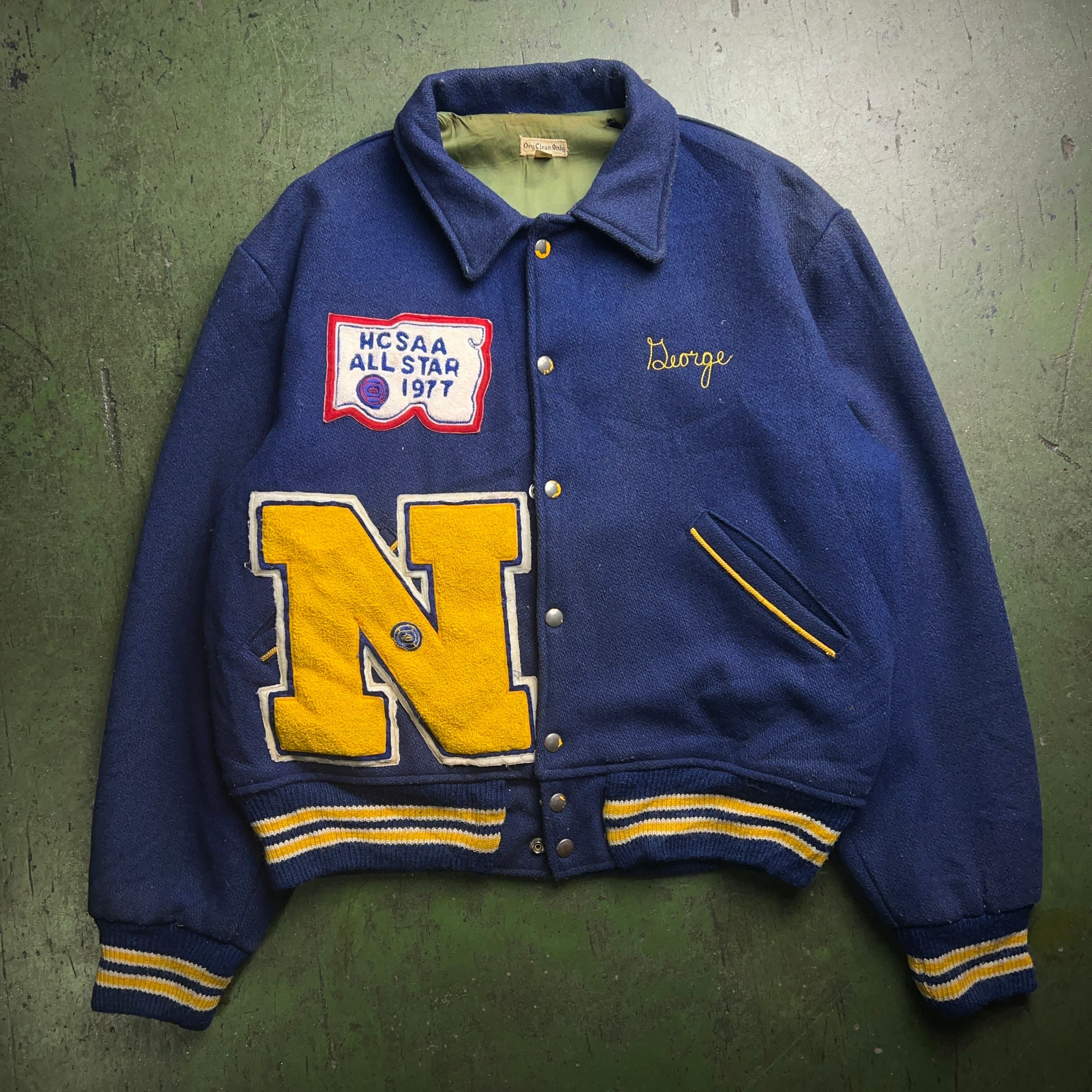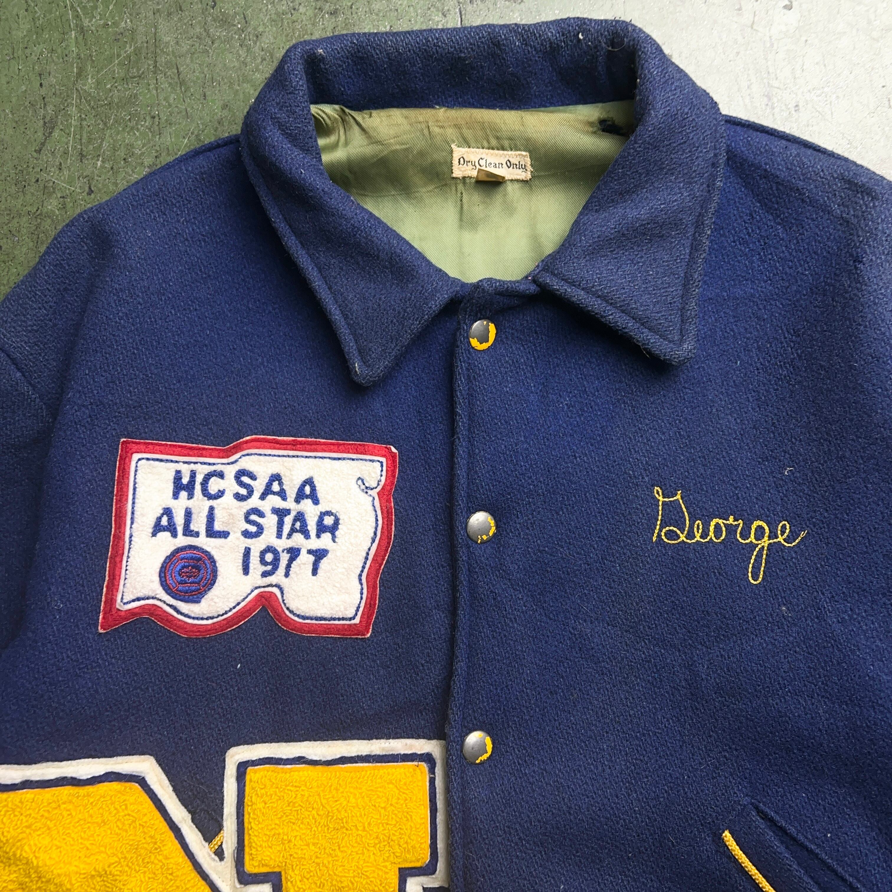 1970's Award Jacket 1977 Big Patched 1970年代 スタジャン アワードジャケット ワッペン チェーンステッチ バック刺繍 ショート丈【1000A3029】【送料無料】