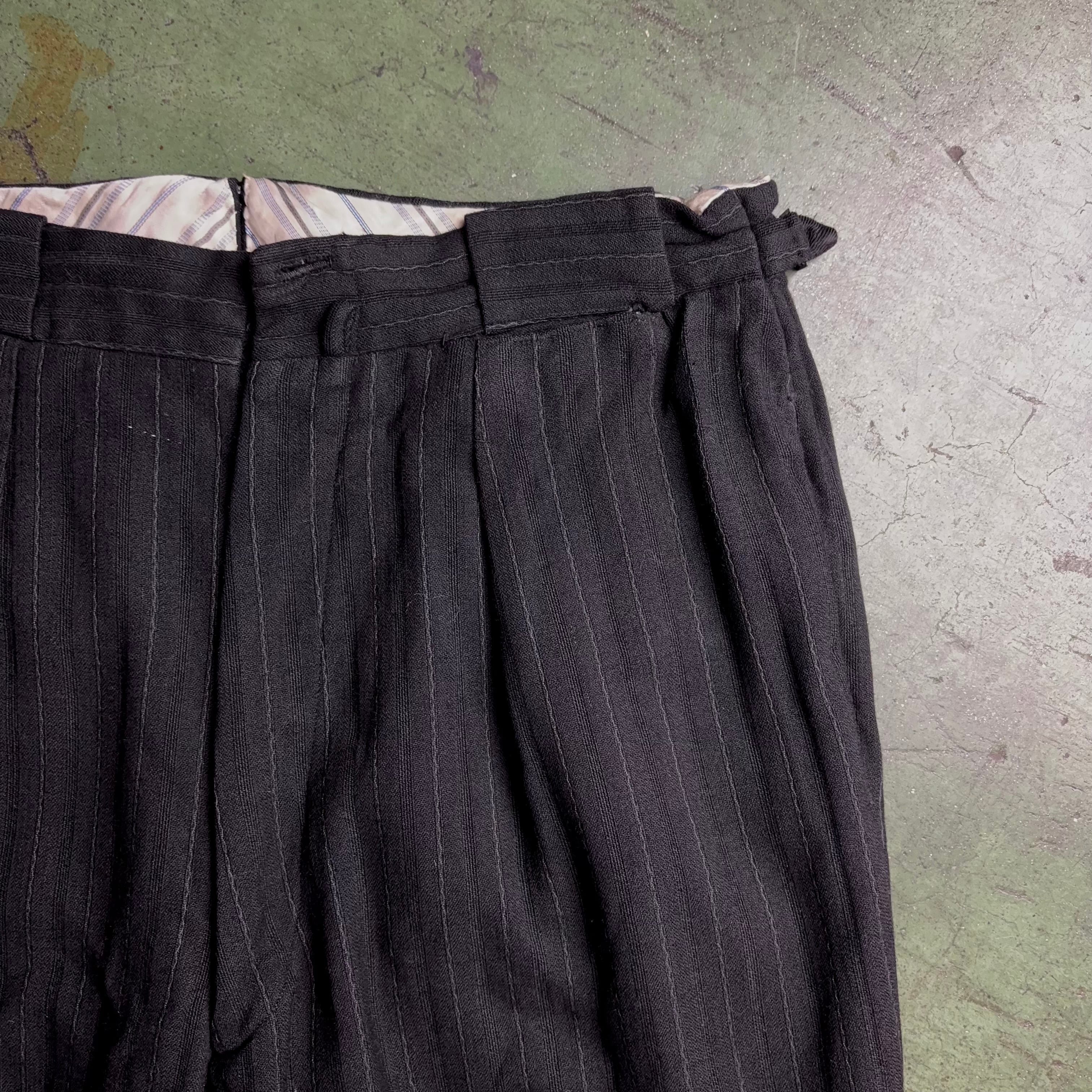 50’s~ EURO Vintage Stripe Slacks Side Adjuster 50年代~ ユーロ ビンテージ ストライプ スラックス タック入り サイドアジャスター 針刺しシンチバック ブラック 黒 スミクロ 墨黒【1000A3046】【送料無料】
