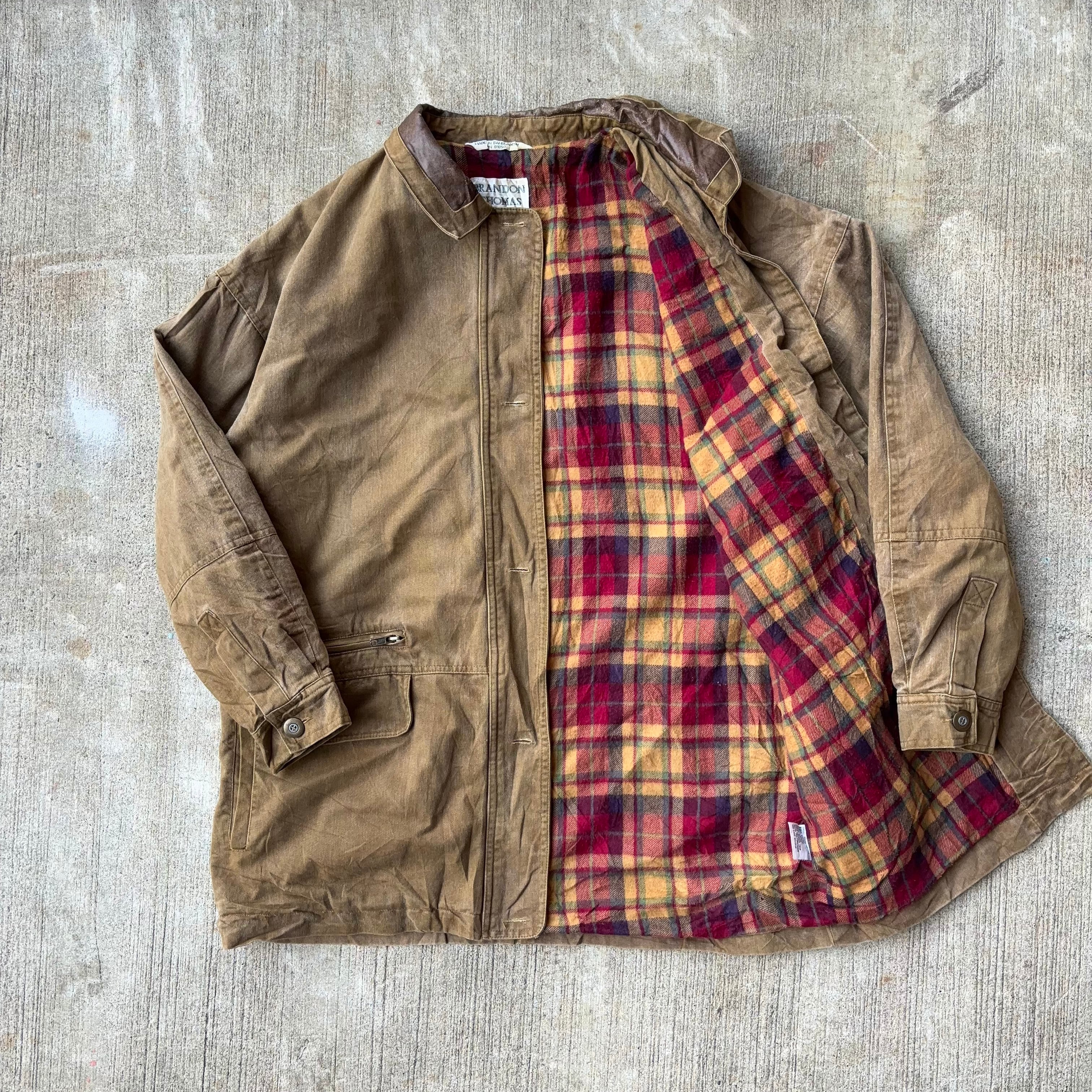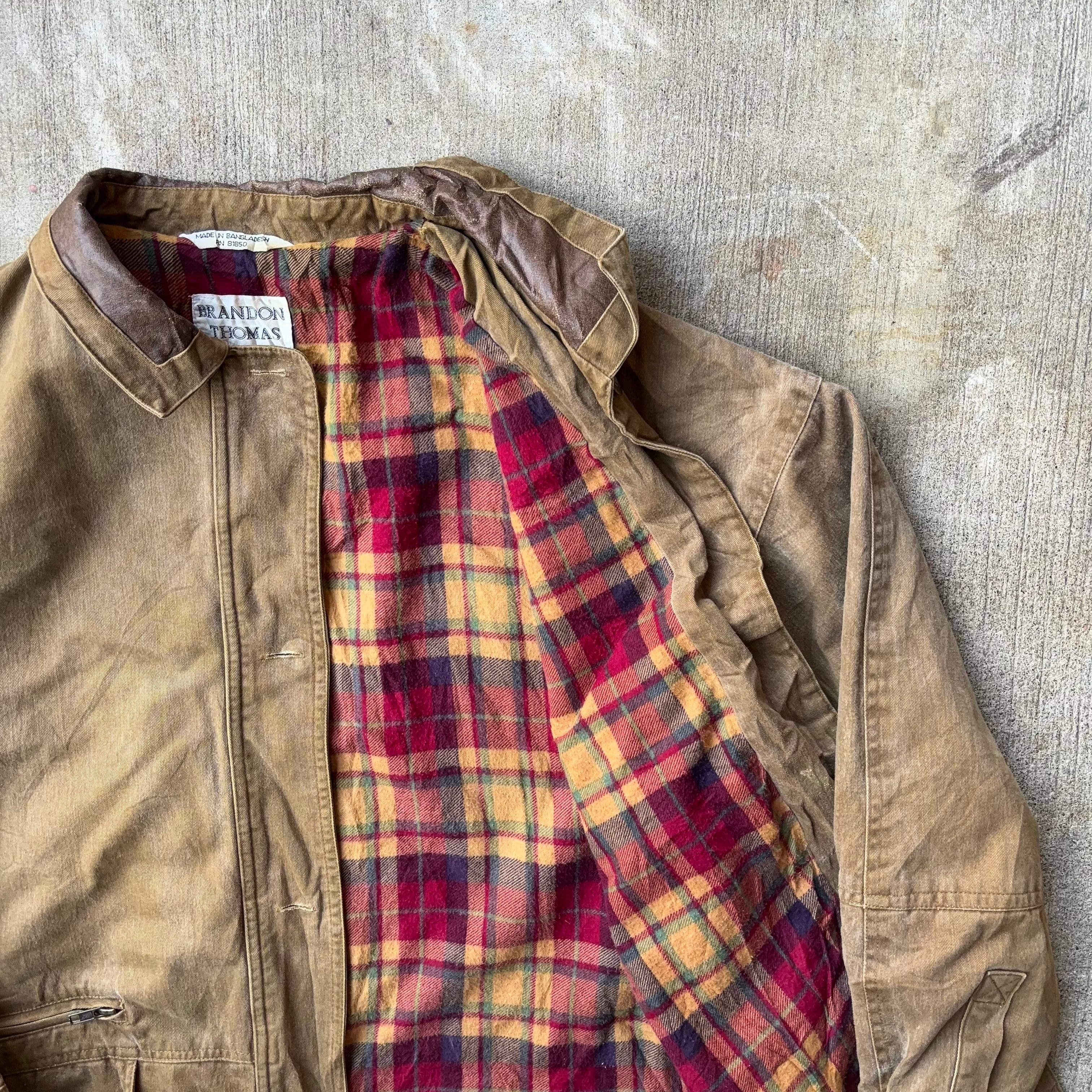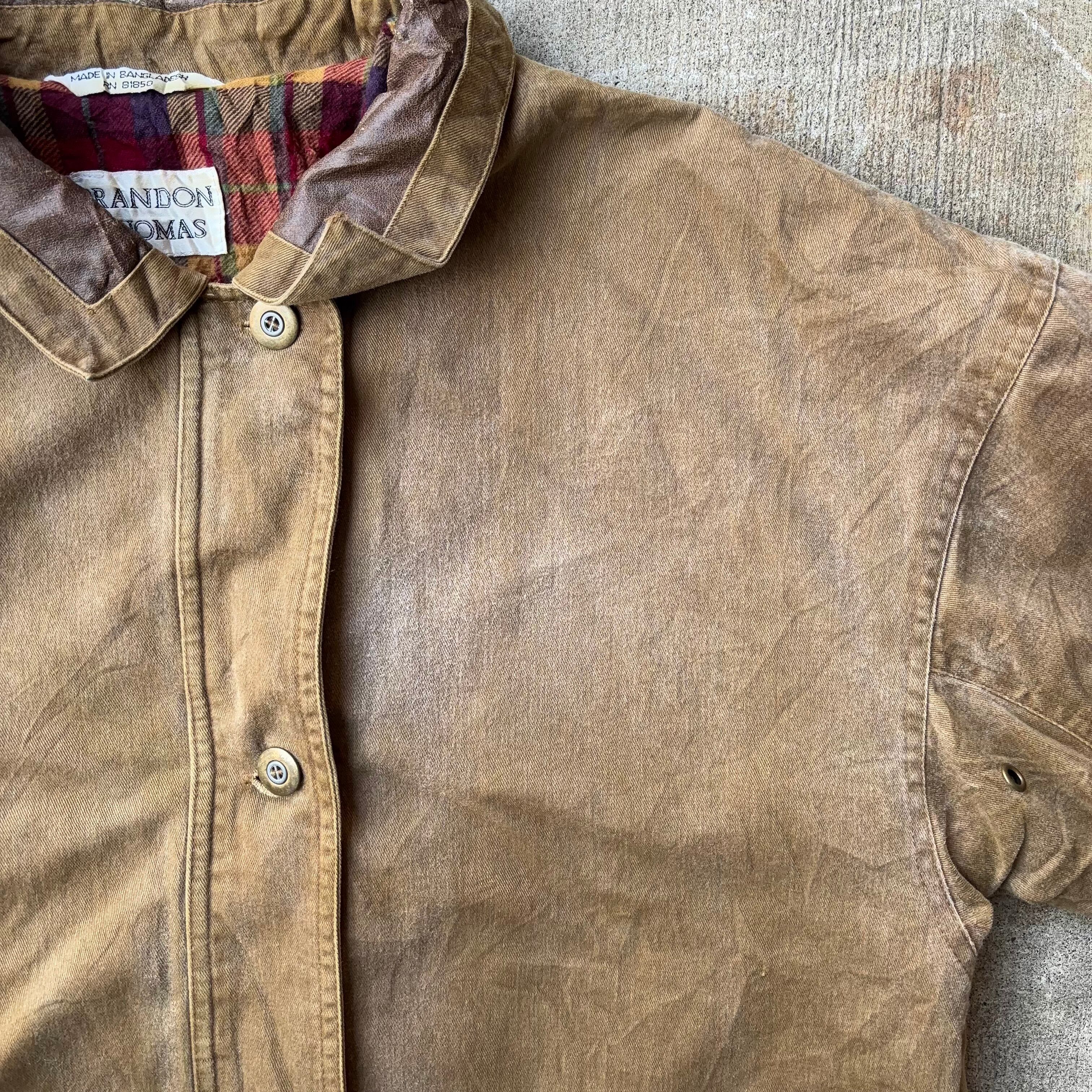 BRANDON THOMAS Coverall Jacket SIZE M 裏地付き カバーオールジャケット 襟レザー ブラウン 色落ち 色褪せ フェード【3000円均一商品】【TH1167】