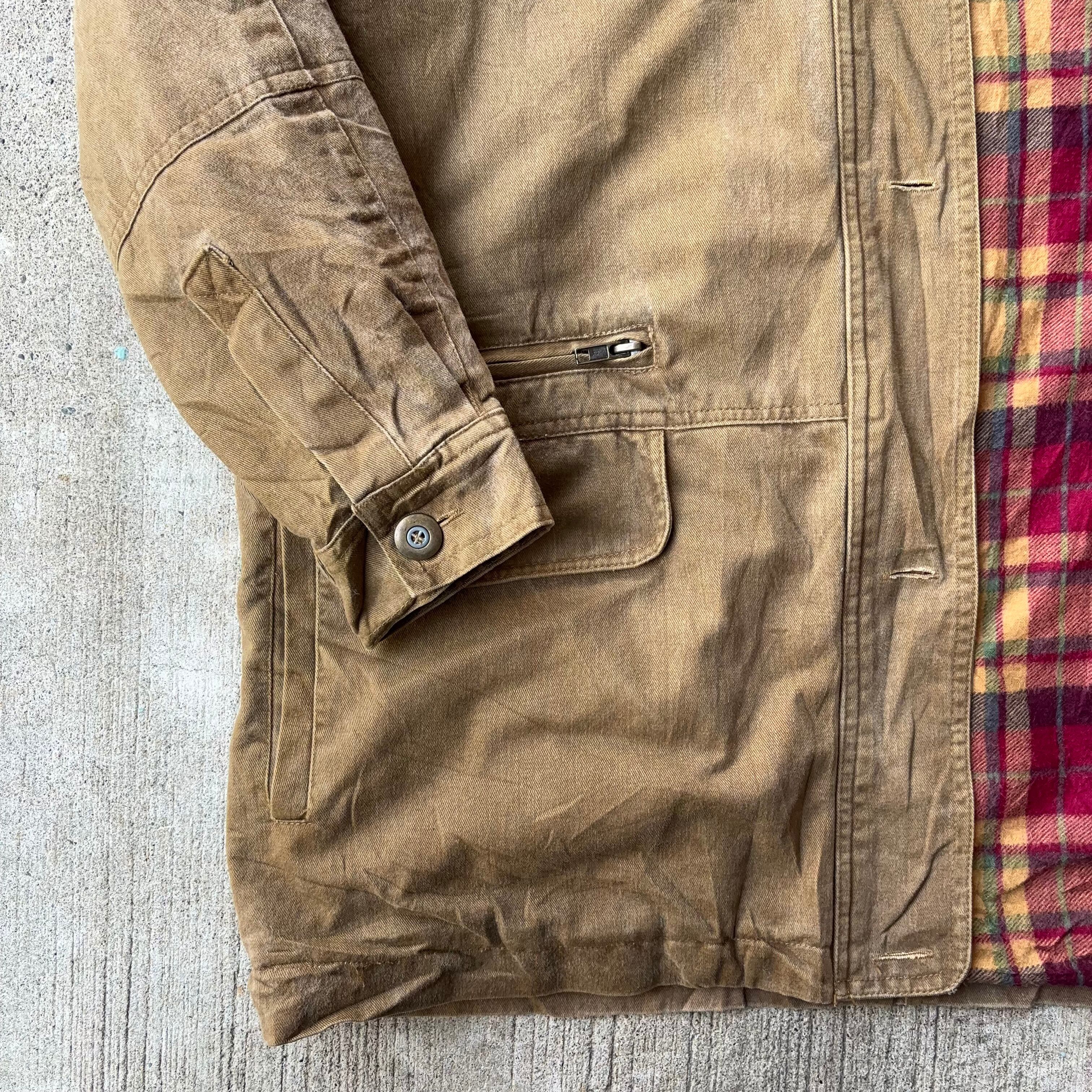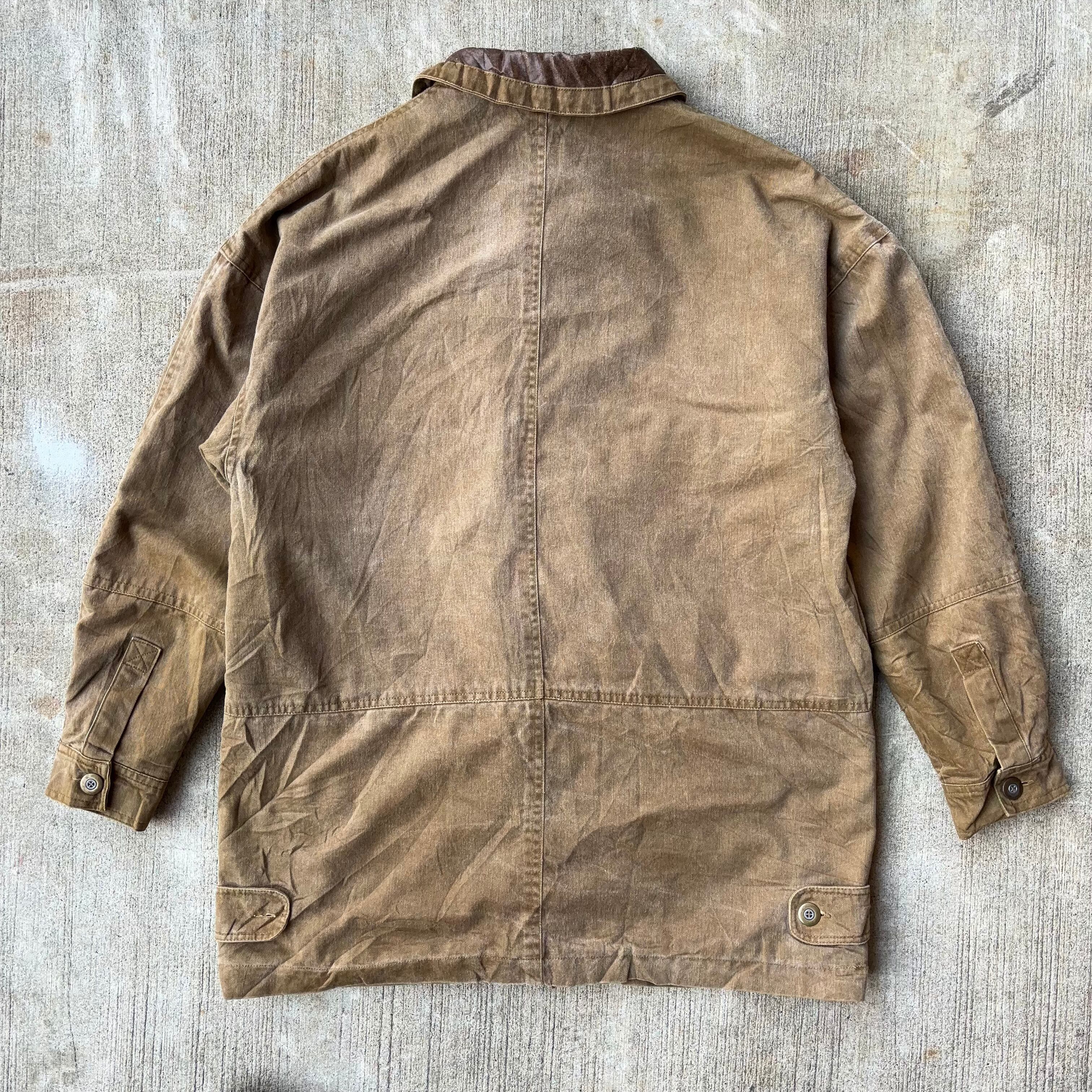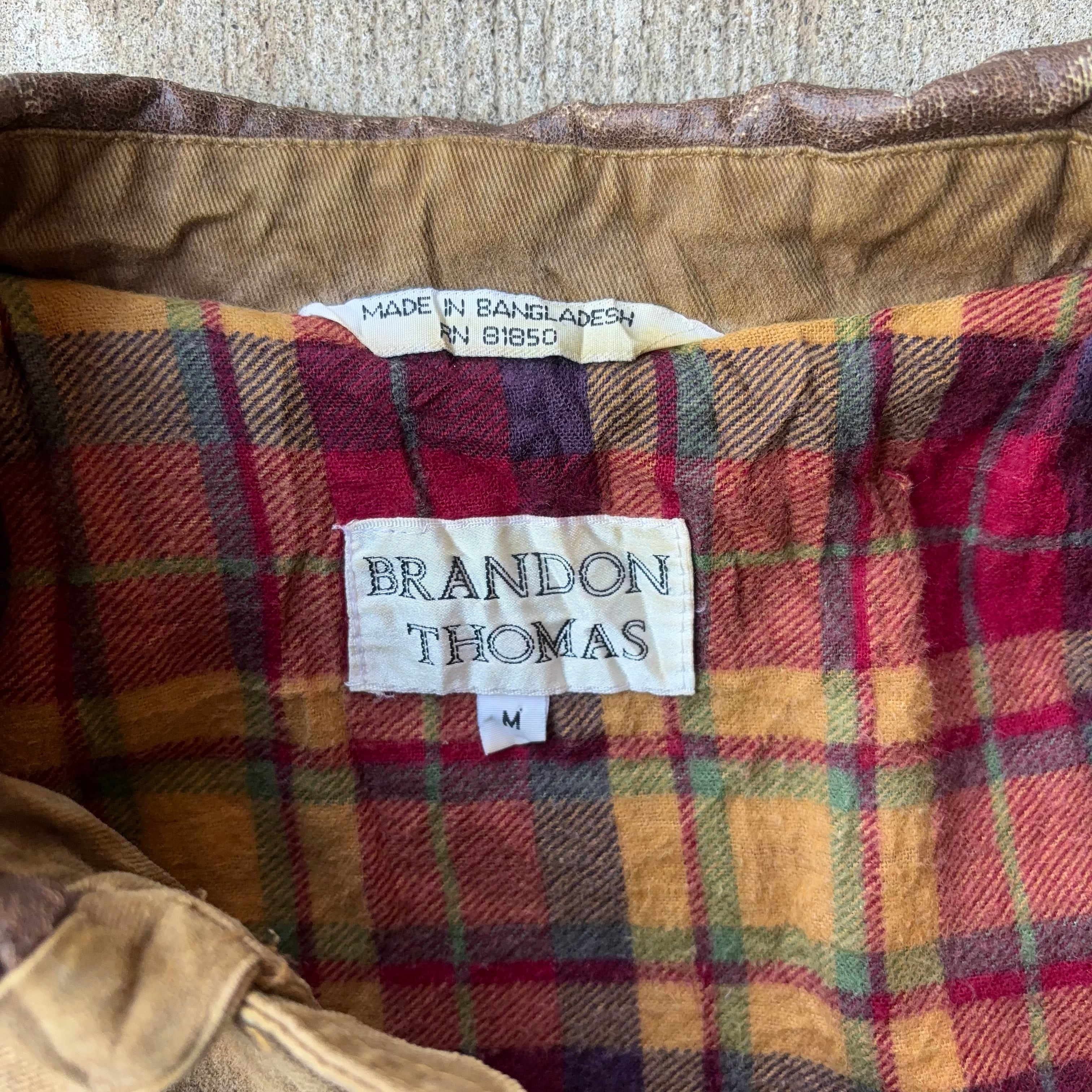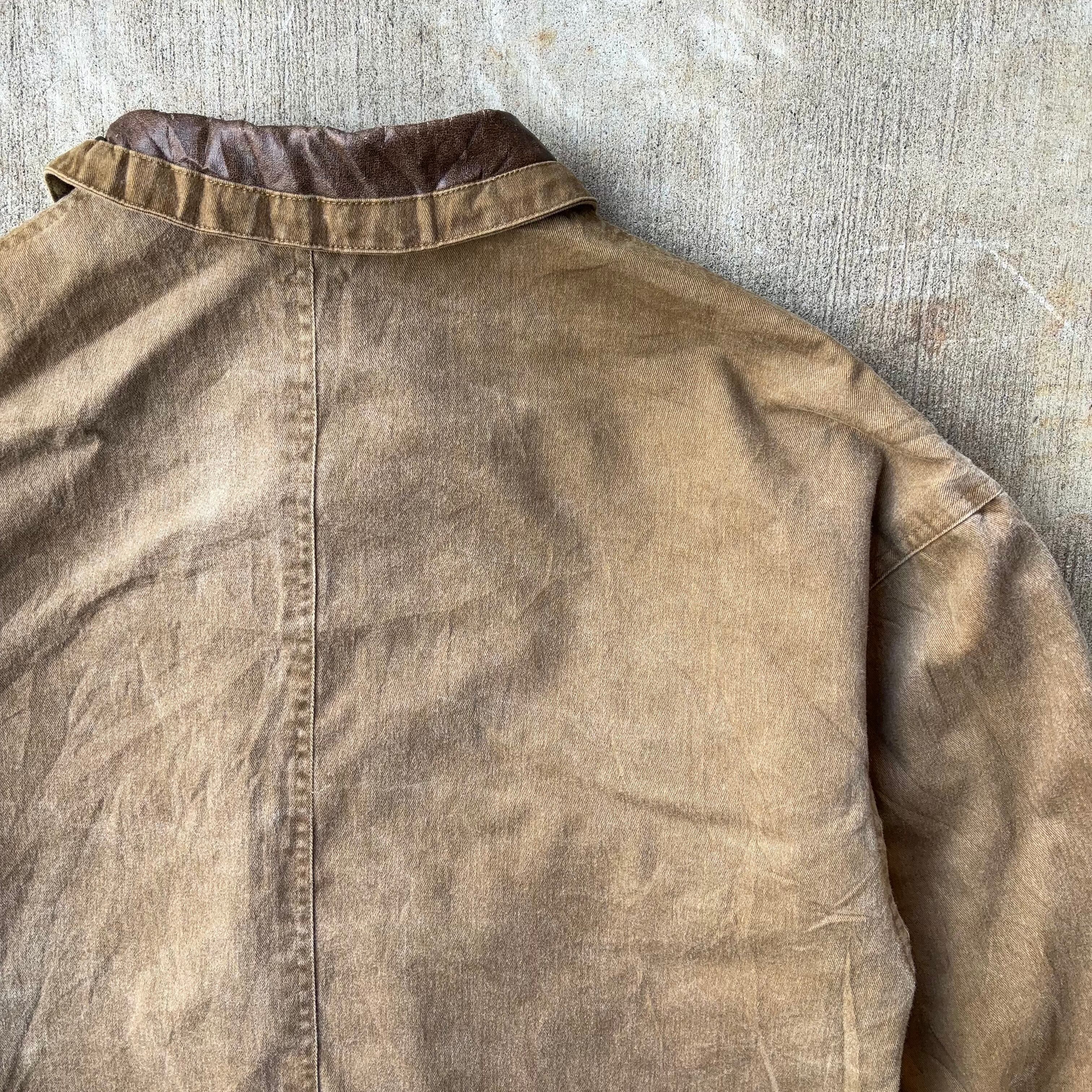 BRANDON THOMAS Coverall Jacket SIZE M 裏地付き カバーオールジャケット 襟レザー ブラウン 色落ち 色褪せ フェード【3000円均一商品】【TH1167】