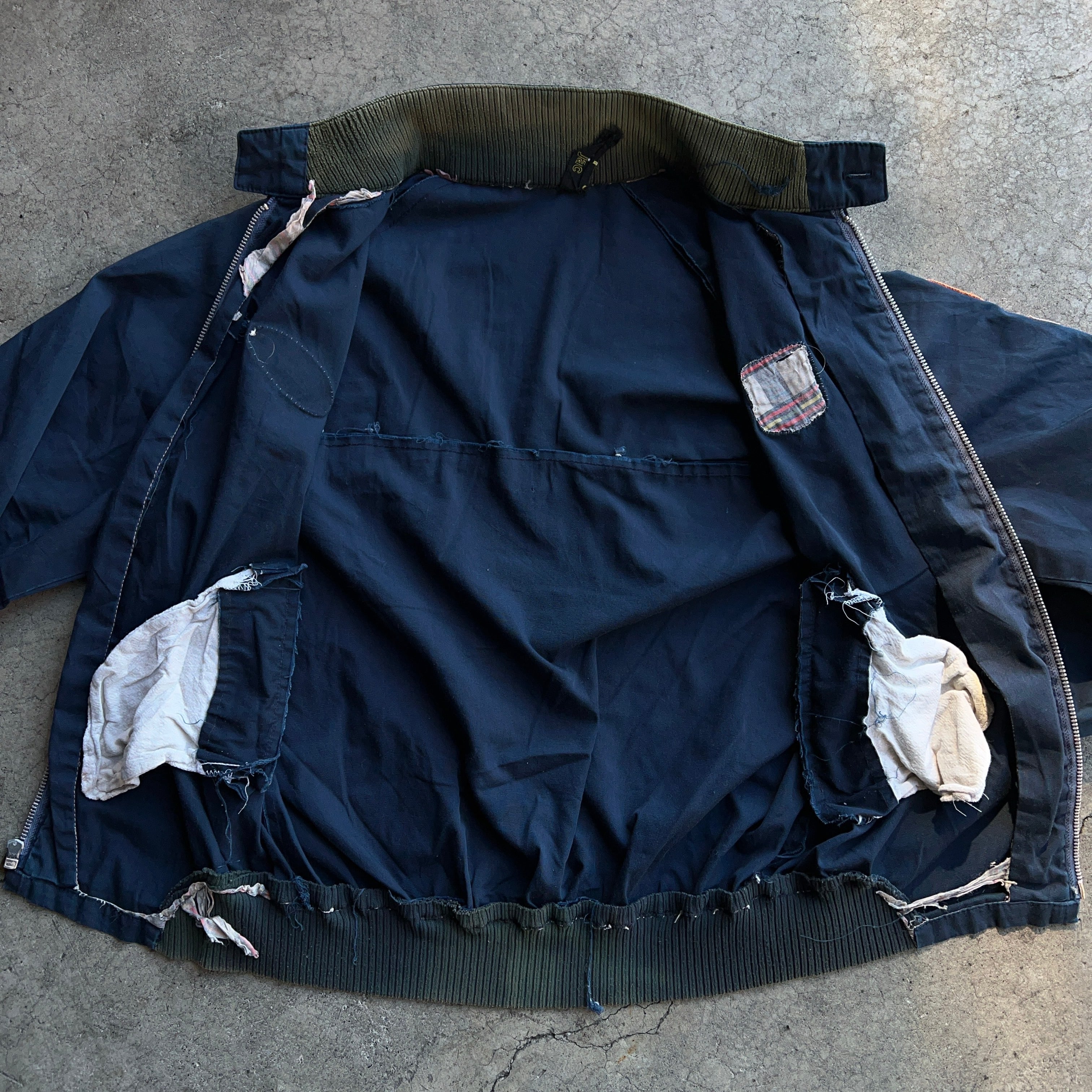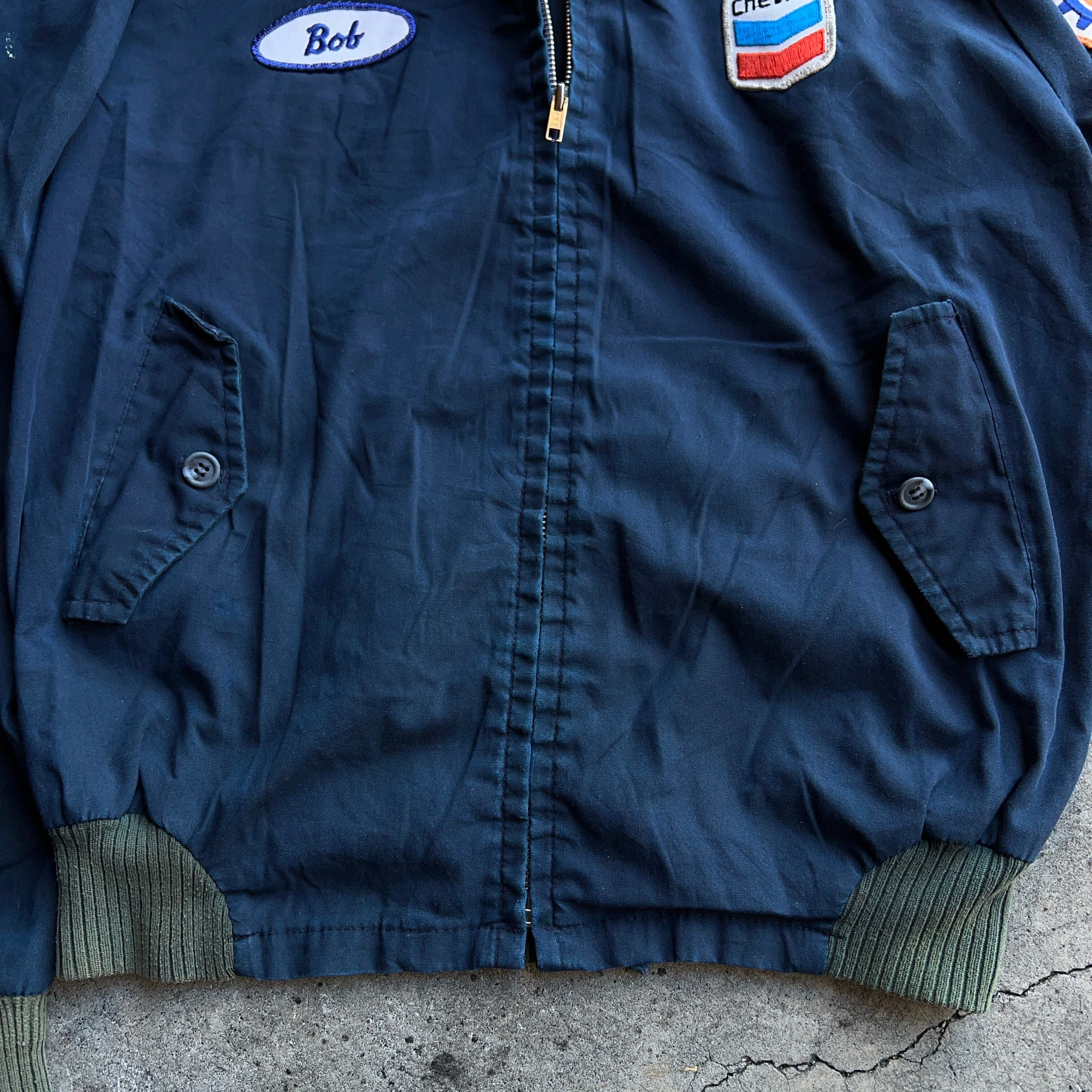 Chevronなどの古いワッペンが付いてることから車関係の人がワークジャケットとして着ていたと思われます。