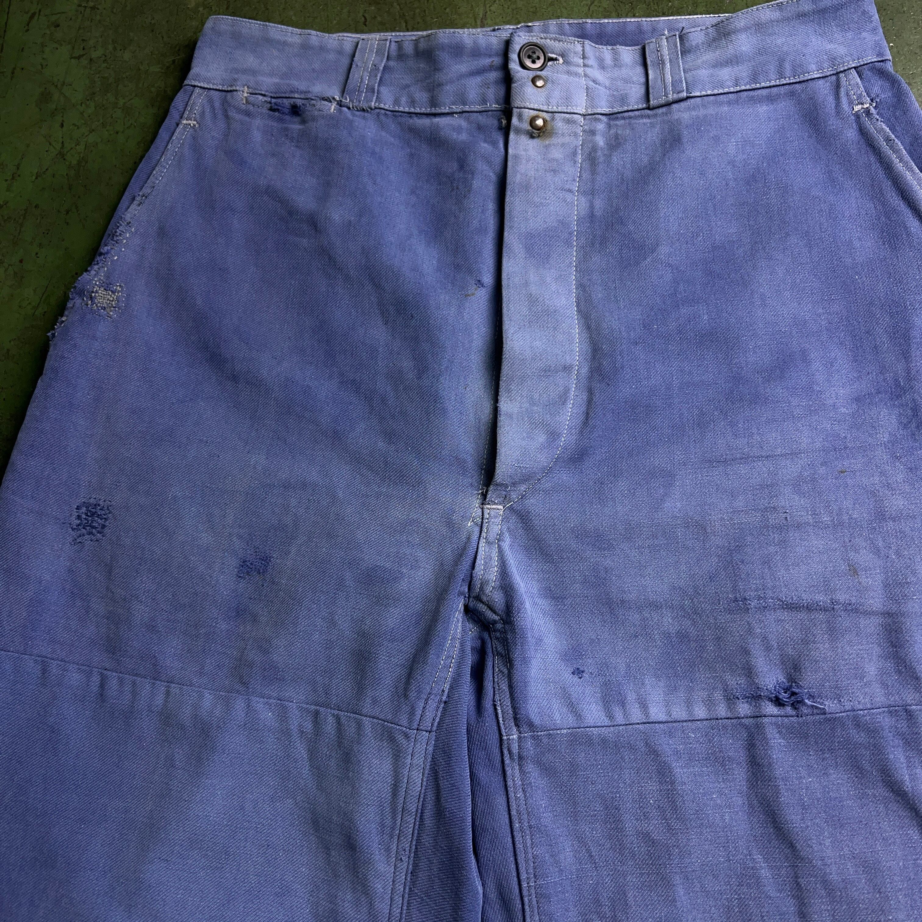 1950's~60's "LA CHOUETTE" EURO WORK Pants Double Knee50年代 60年代 ユーロワーク パンツ ダブルニー フェード 色褪せ 汚れ ボロ 襤褸 W32【1000A3089】【送料無料】