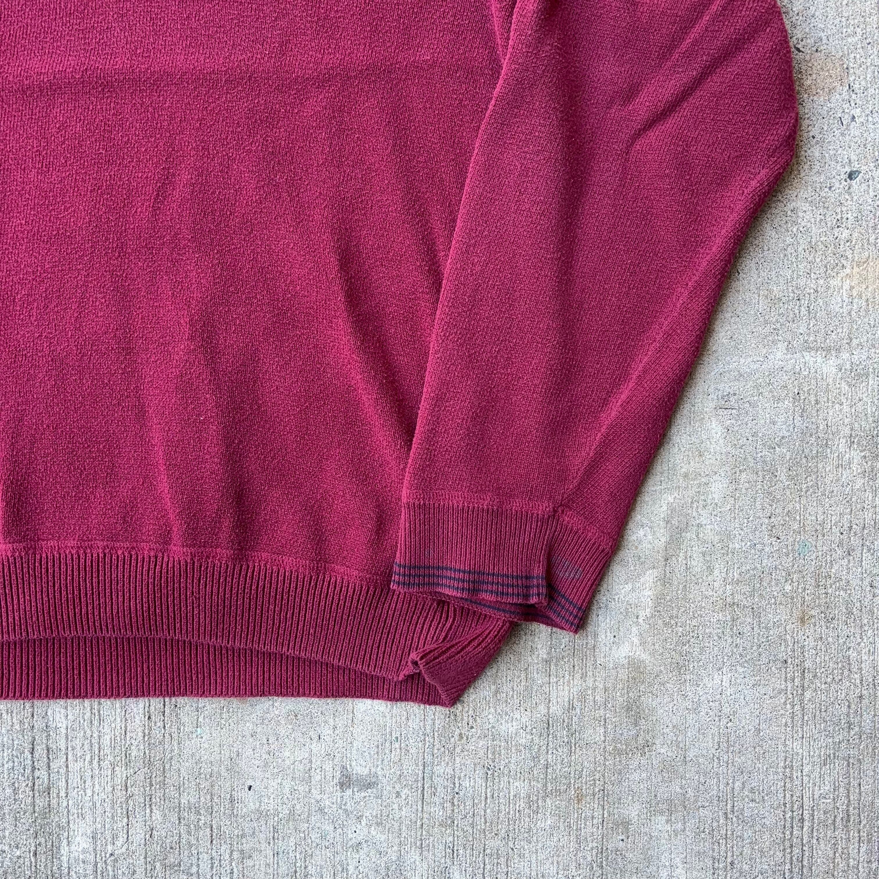 90’s~ CHAPS COTTON Knit Sweater SIZE L 90年代~ チャップス コットンニット ワンポイント ワインレッド レッド【3000円均一商品】【TH1196】