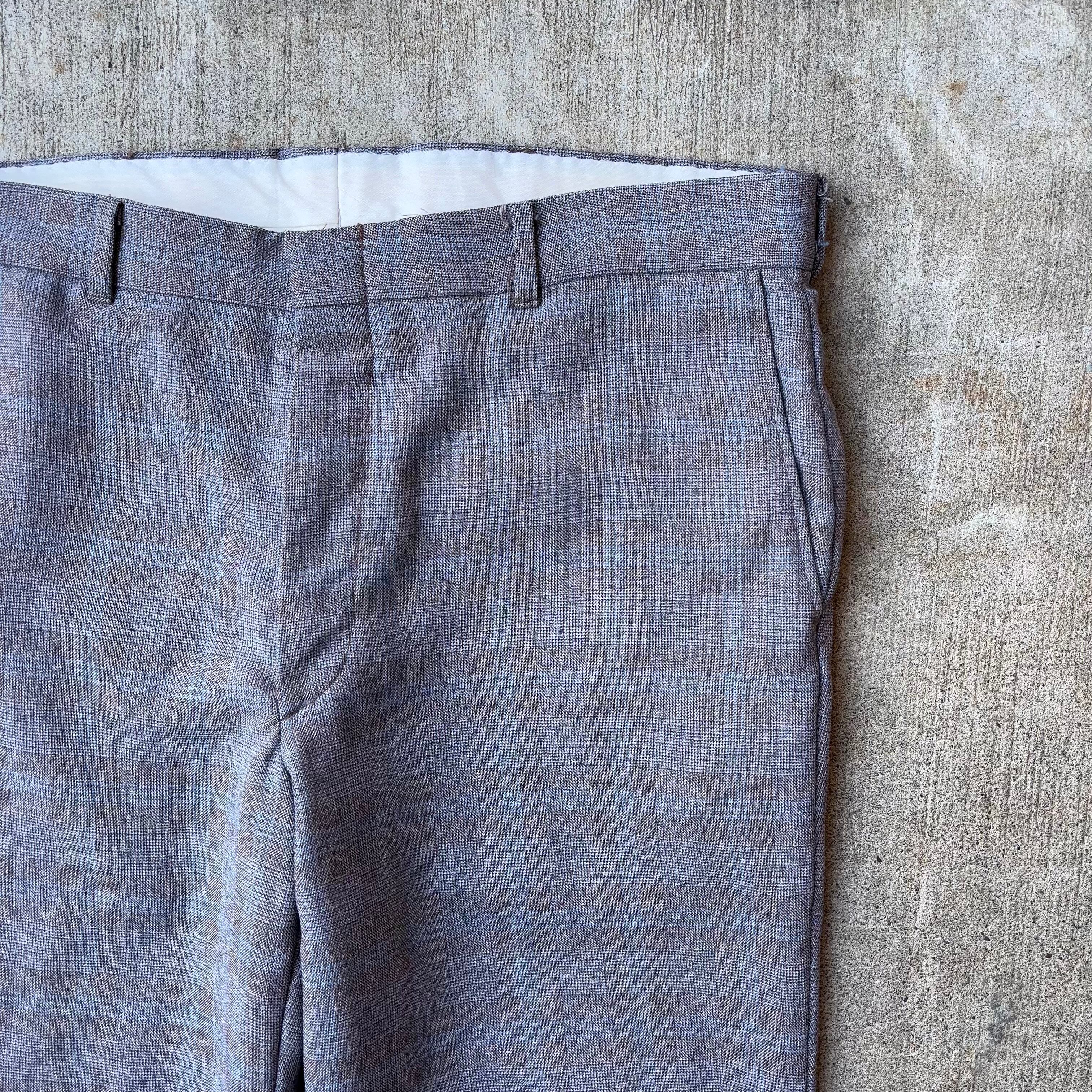 Wide Plaid POLYESTER Slacks W36 ワイド チェック柄 ポリスラックス スラックス【3000円均一商品】【TH1203】
